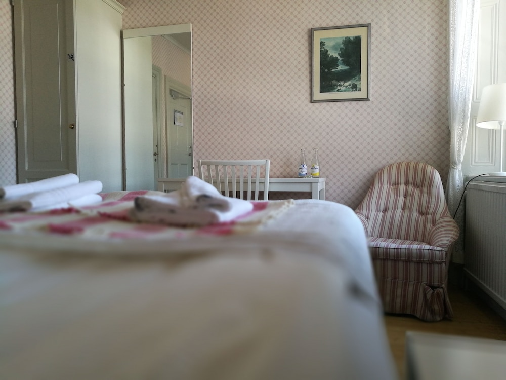 This is more like a bed and breakfast, the hotel is in the country and perhaps 300 yrs old.The proprieters were a very nice,friendly couple. We did not like our room the first nite so they very graciously gave us an upgraded room at no extra charge.This is appx a 20 minute drive thru the country to get to Uppsula, but was well worth it due to the price and the quiantness of the property. there are 2 supermarkets in the town but not much in the way of