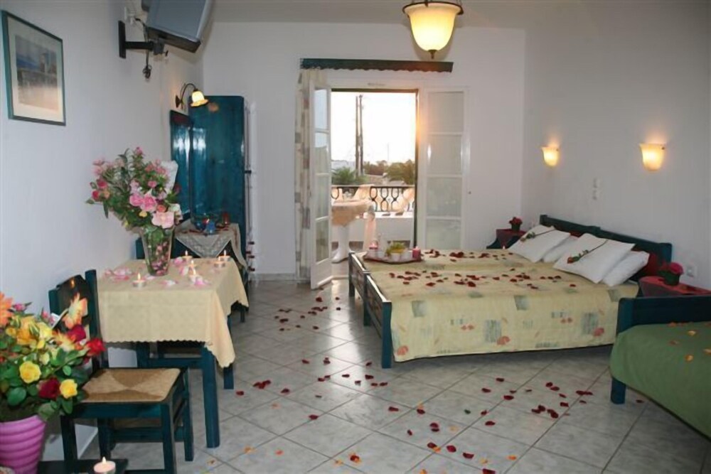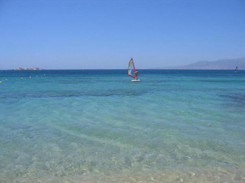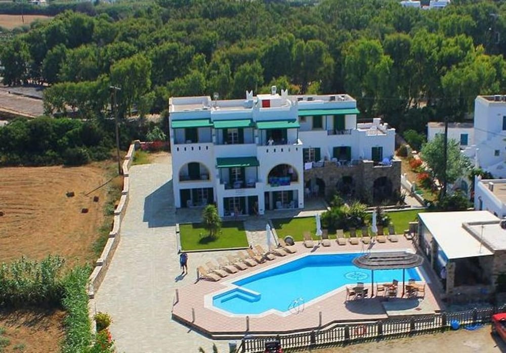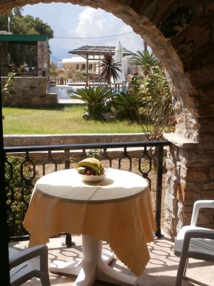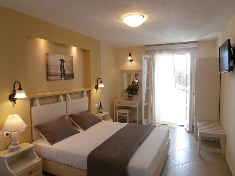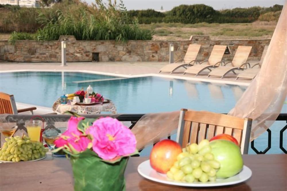 Hôtel situé en retrait de la route, donc subissant moins la poussière et le passage des véhicules. Bonne localisation, proche de la plage, d'une supérette, des restaurants et de la ville. Résidence très bien entretenue, avec une piscine très agréable et des petits-déjeuners très complets (sucré-salé). La chambre était très spacieuse, avec une petite terrasse donnant sur la mer, mais sans shampoing-savon pour la douche. Attention à l'emplacement (pas au coeur d'Agia Anna mais à Maragas- demander au chauffeur de car).