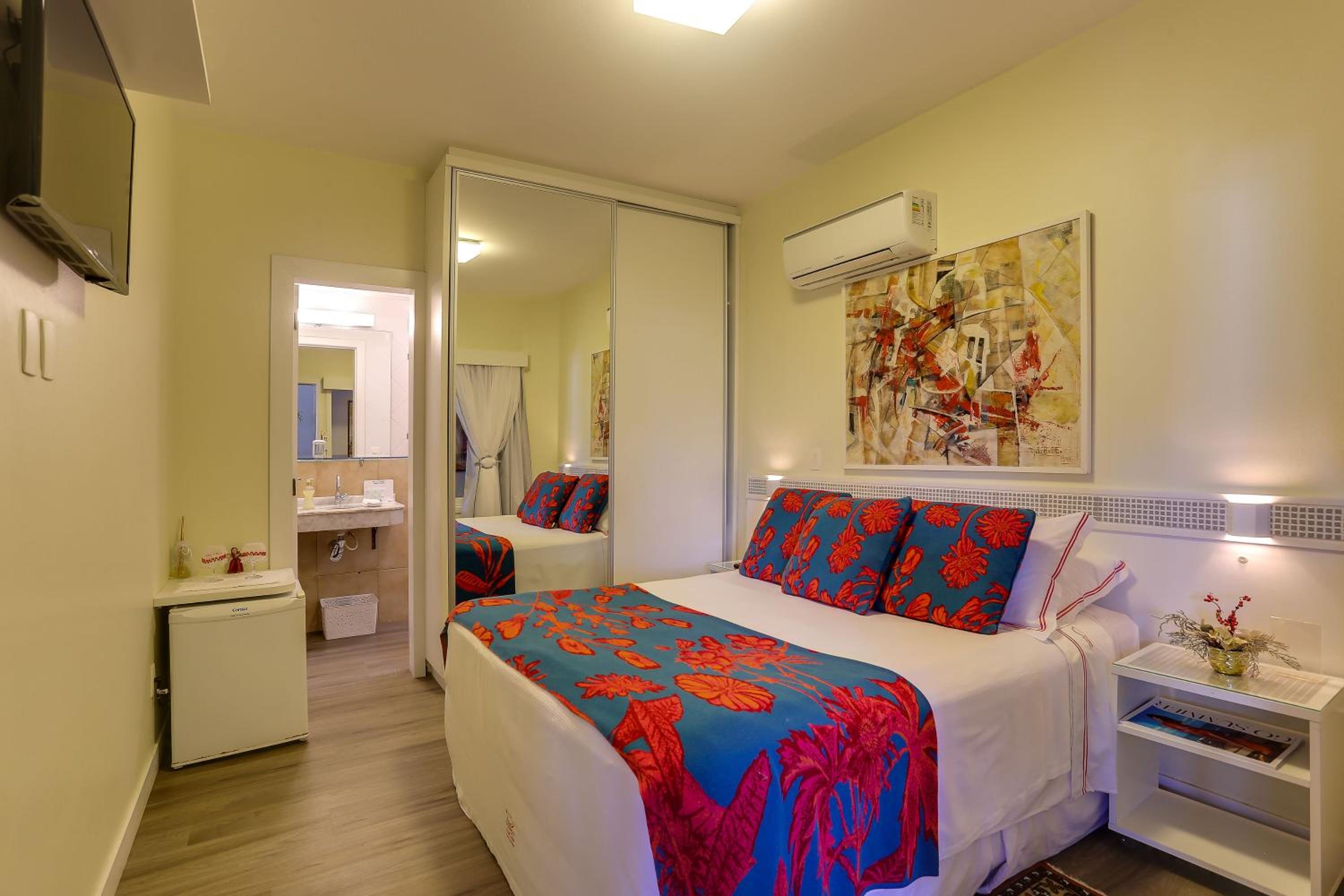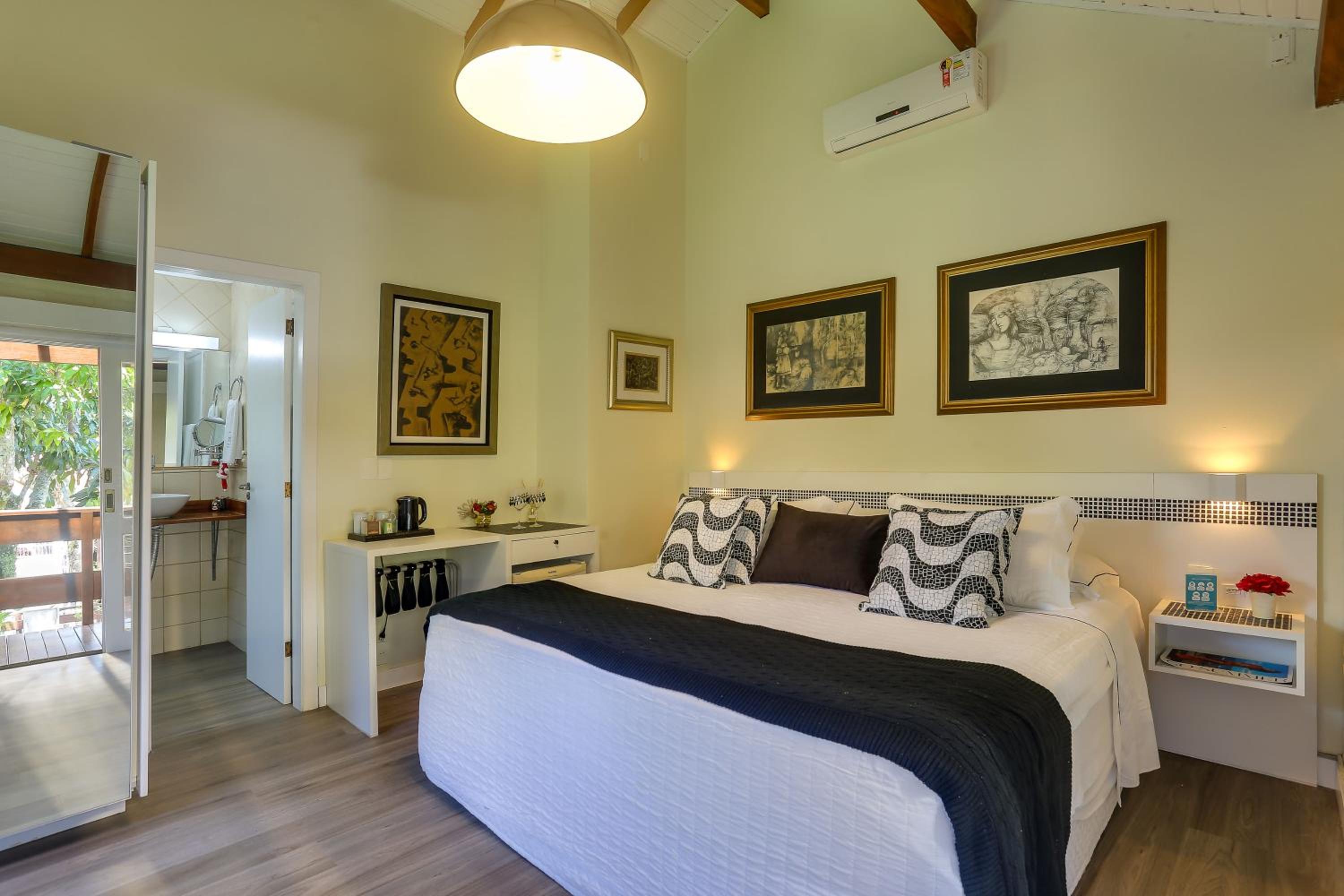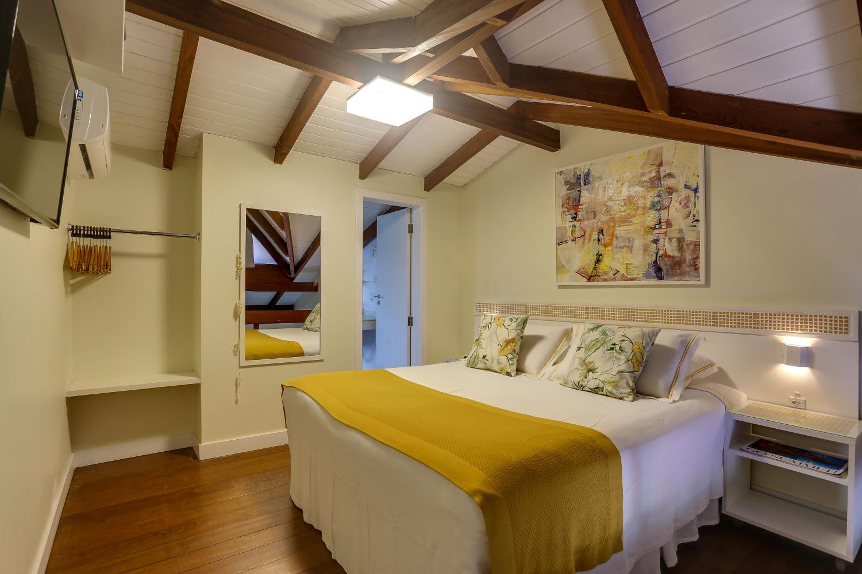 Experience the ultimate comfort just steps away from Jurere Beach at Nova Pousada dos Chás. Our air-conditioned rooms with kitchenettes, cable TV, and free Wi-Fi ensure a relaxing stay.
