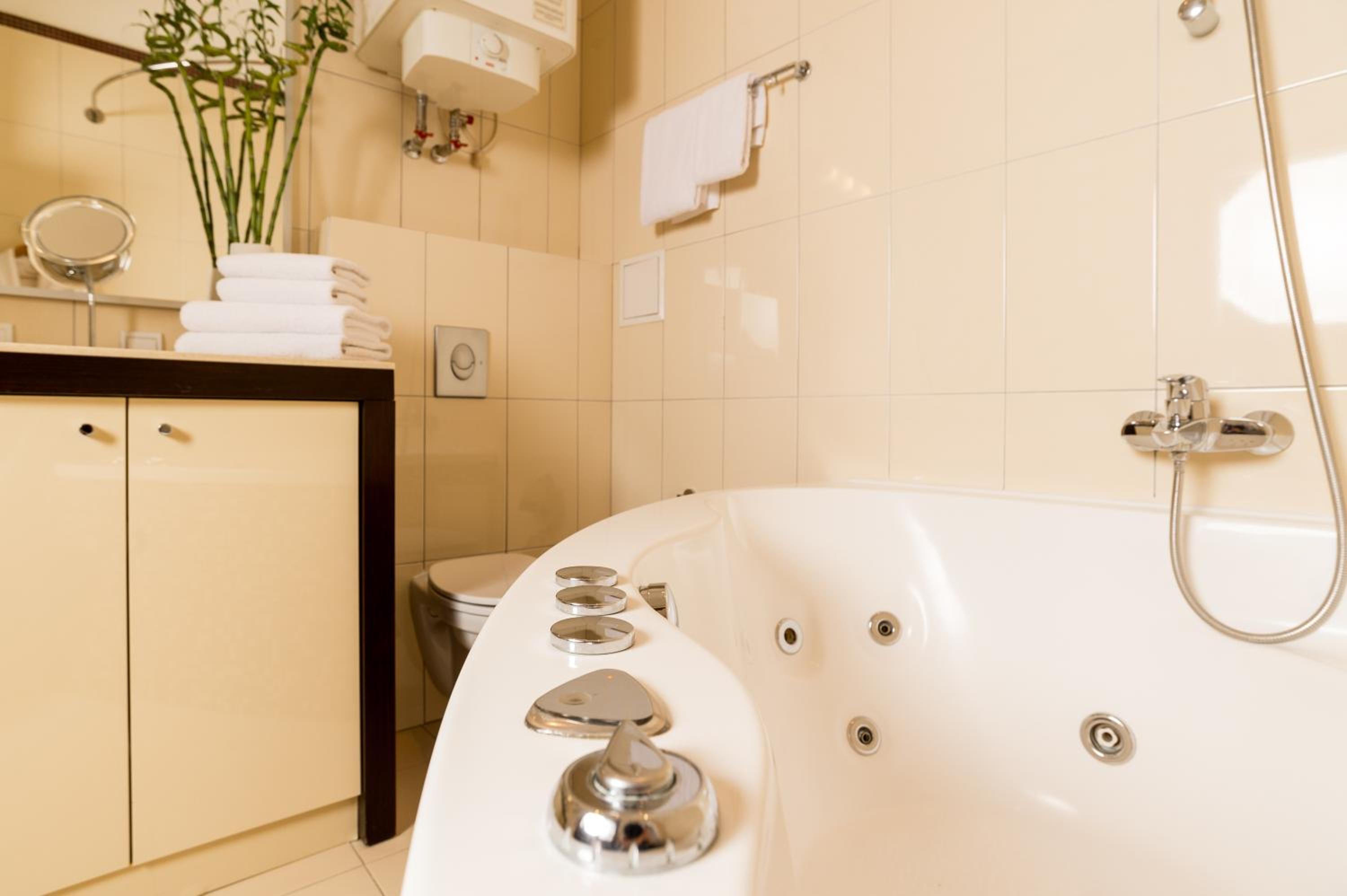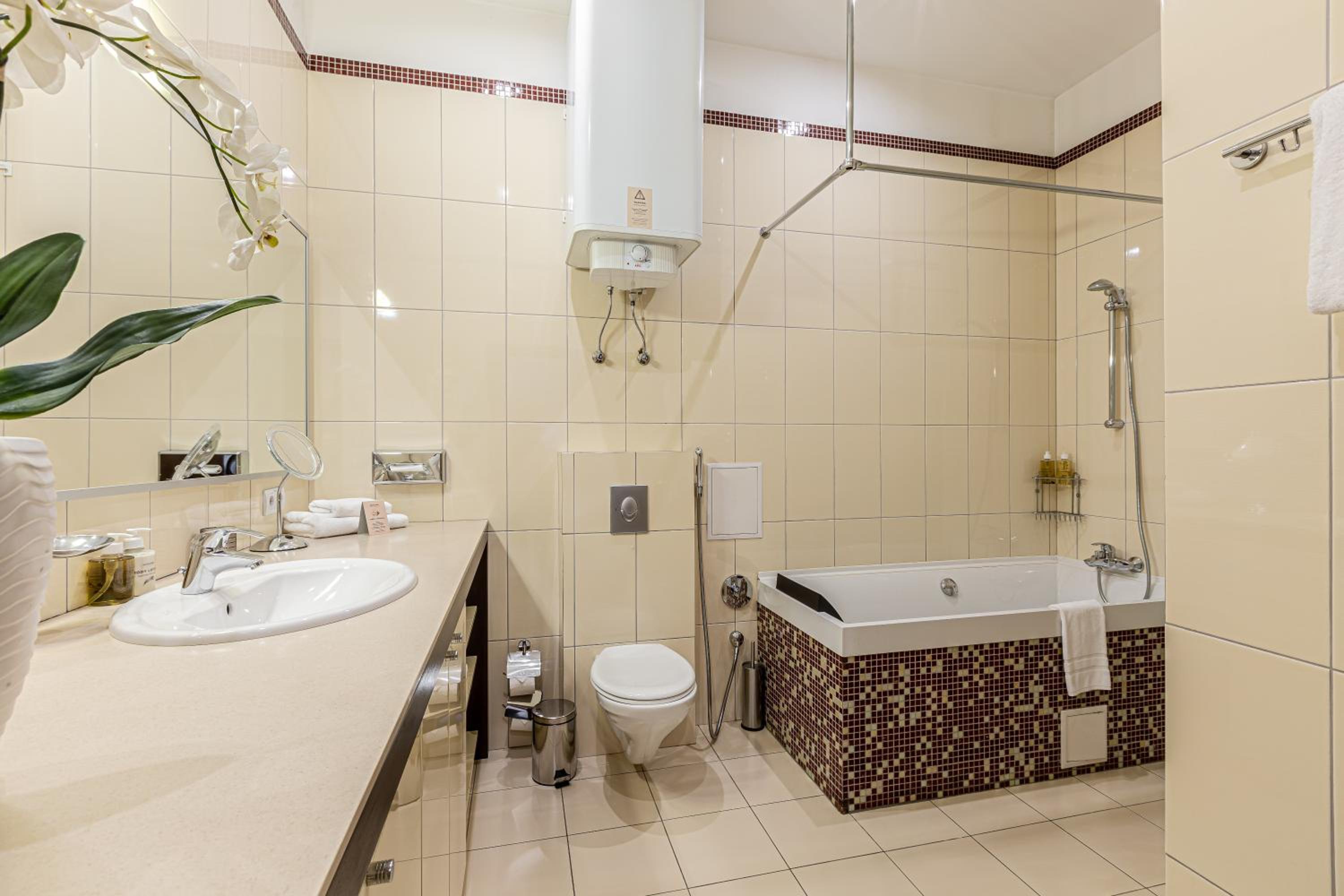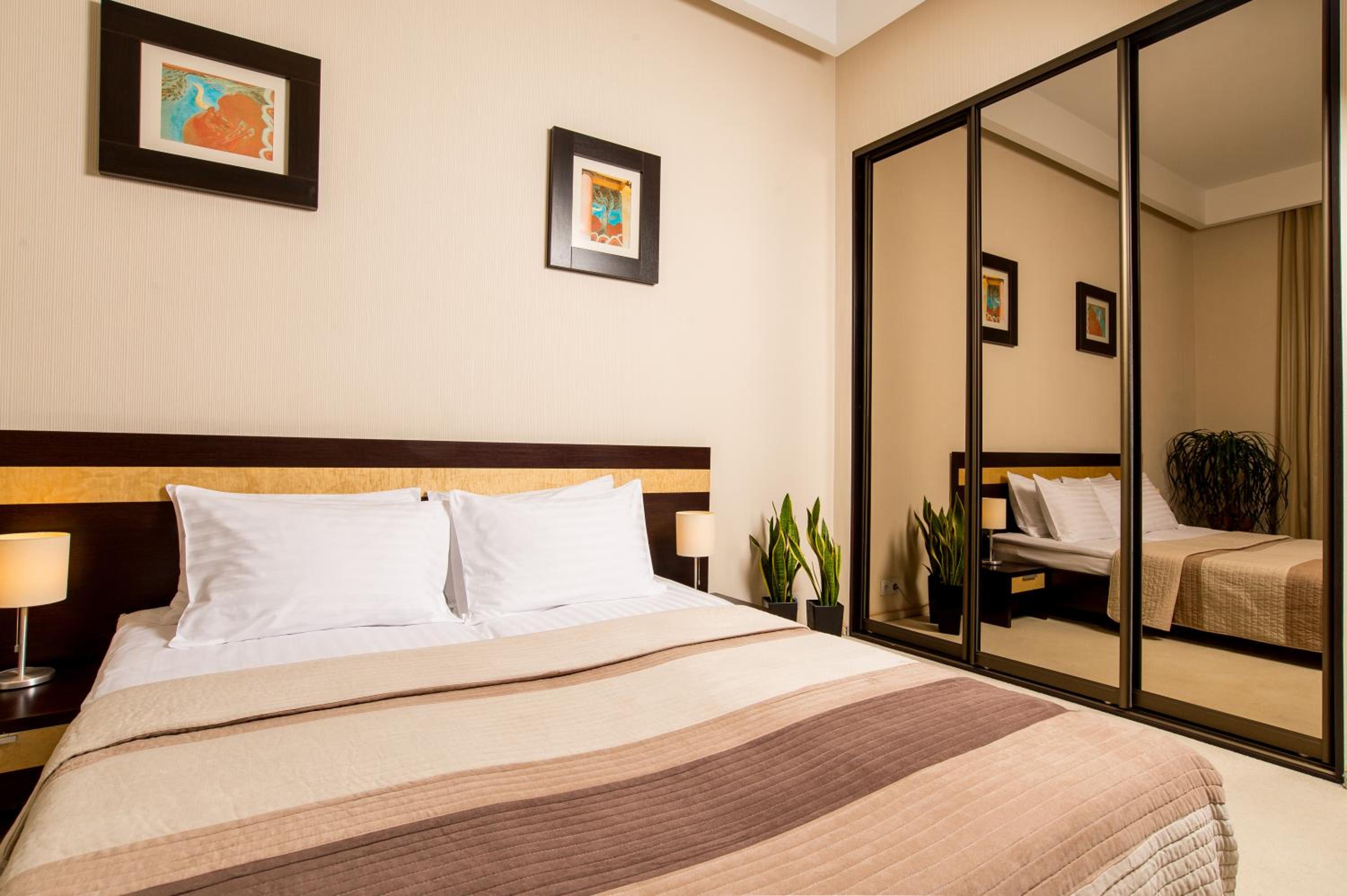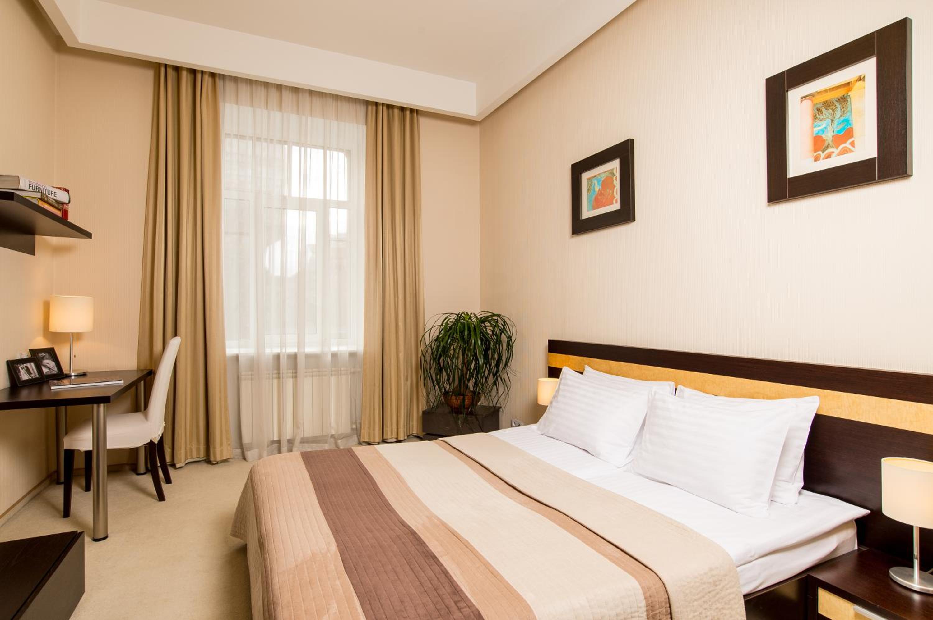 Wonderful experience at this hotel. We stayed in the business suite the day of our wedding in Kyiv. I contacted the hotel through hotels.com to ask if they could do something special for my new spouse. They had a bottle of bubbly and some delicious chocolates waiting for us. She really liked that! We liked the place so much that we stayed an extra day. Conveniently located by some delicious restaurants. We enjoyed our stay here very much!