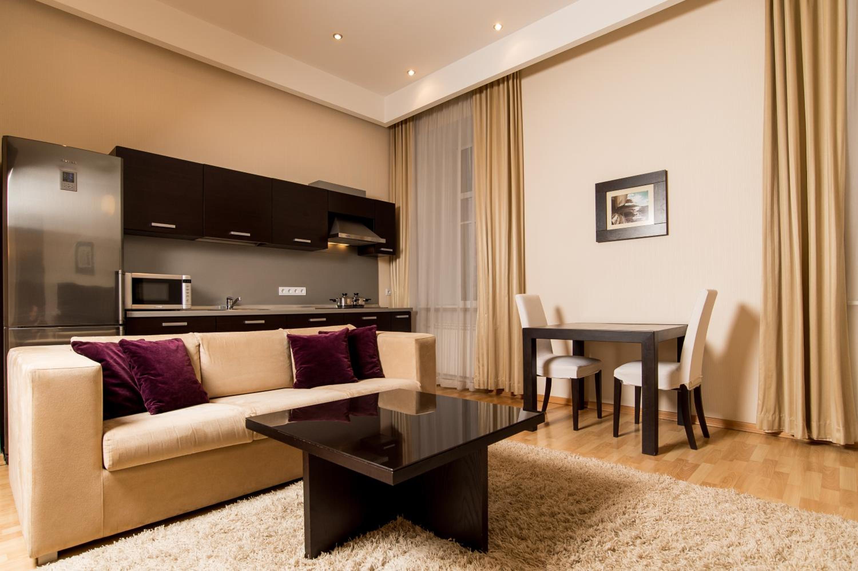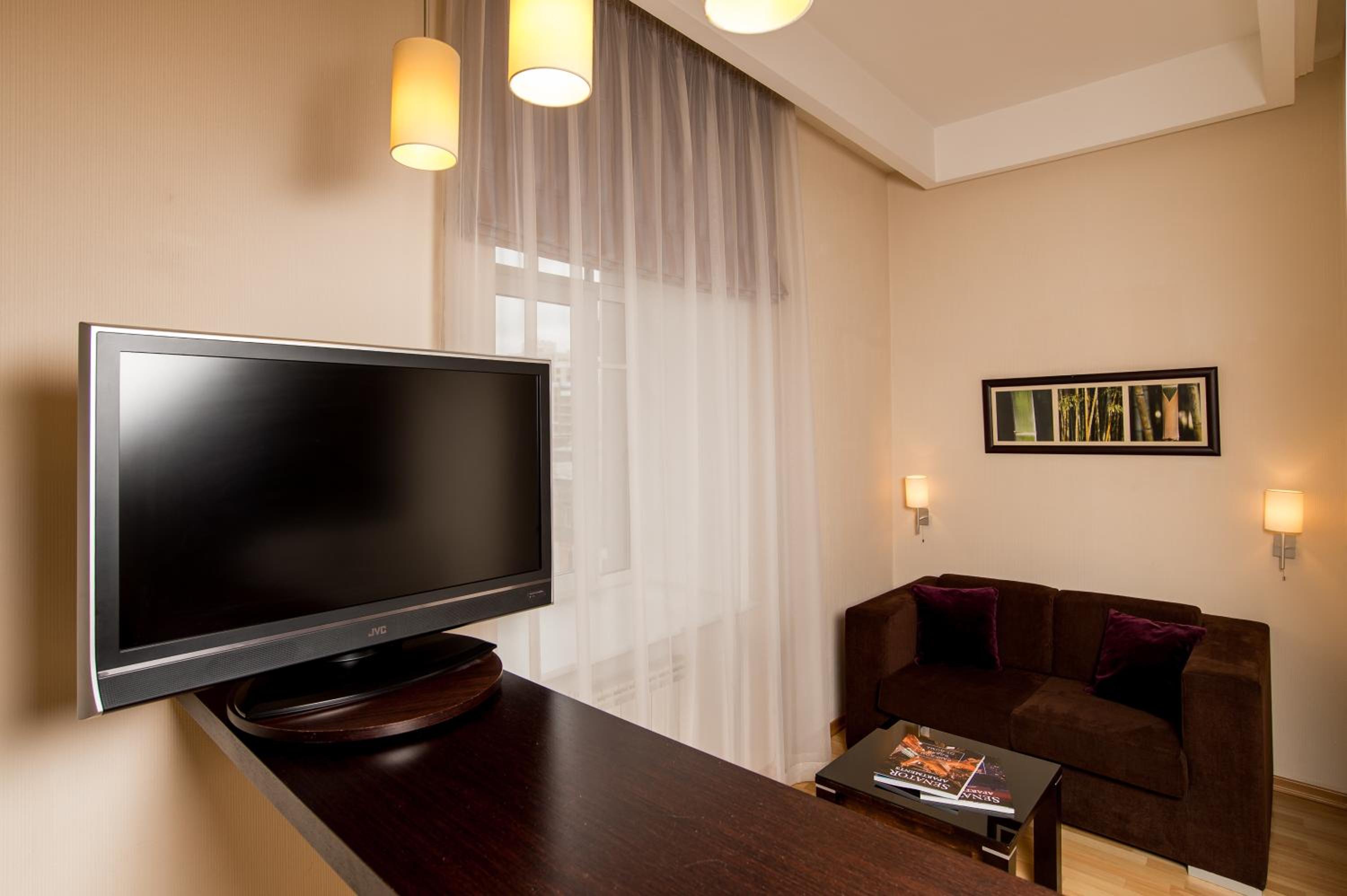 The Senator Victory Square offers stylish apartments with a flat-screen TV, work desk, and en suite bathroom. Some rooms even feature a kitchen for added convenience.