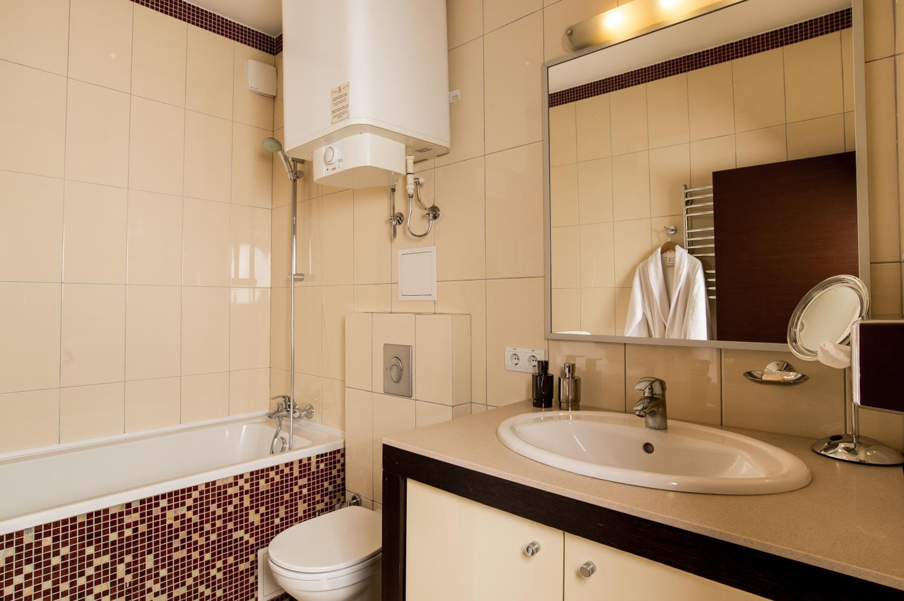 Привітний персонал, ліфт, наявність необхідної косметики, чистих рушників, халатів і тапочок.