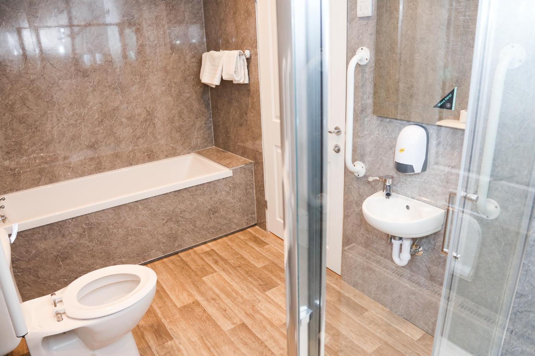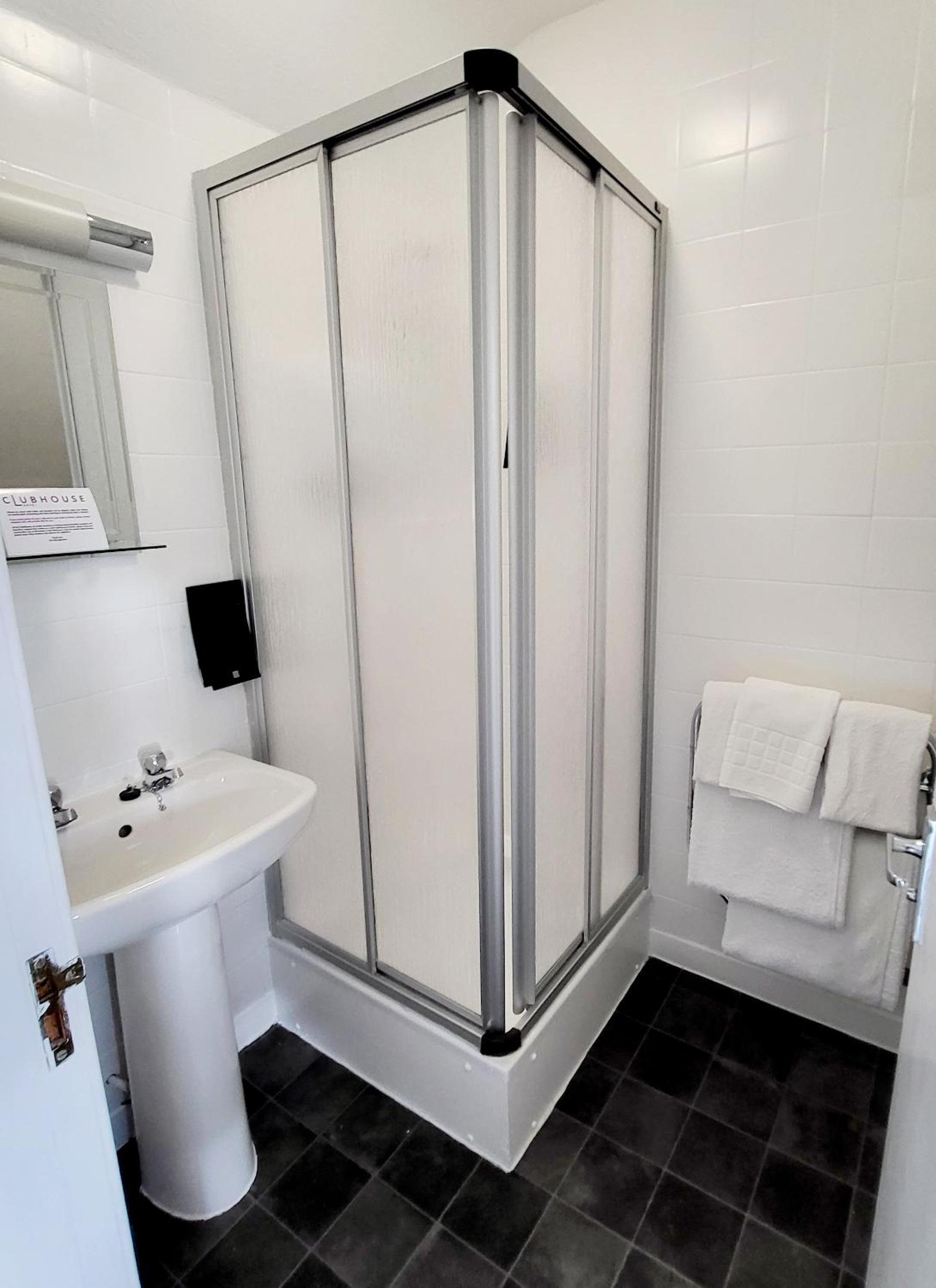 Rather cramped.Toilet roll holder falling off the wall. In an extension room, door lock not secure….Clubhouse had been a highly rated hotel but sadly past it’s prime… told it is for sale . Let’s hope someone buys it and gives it TLC……