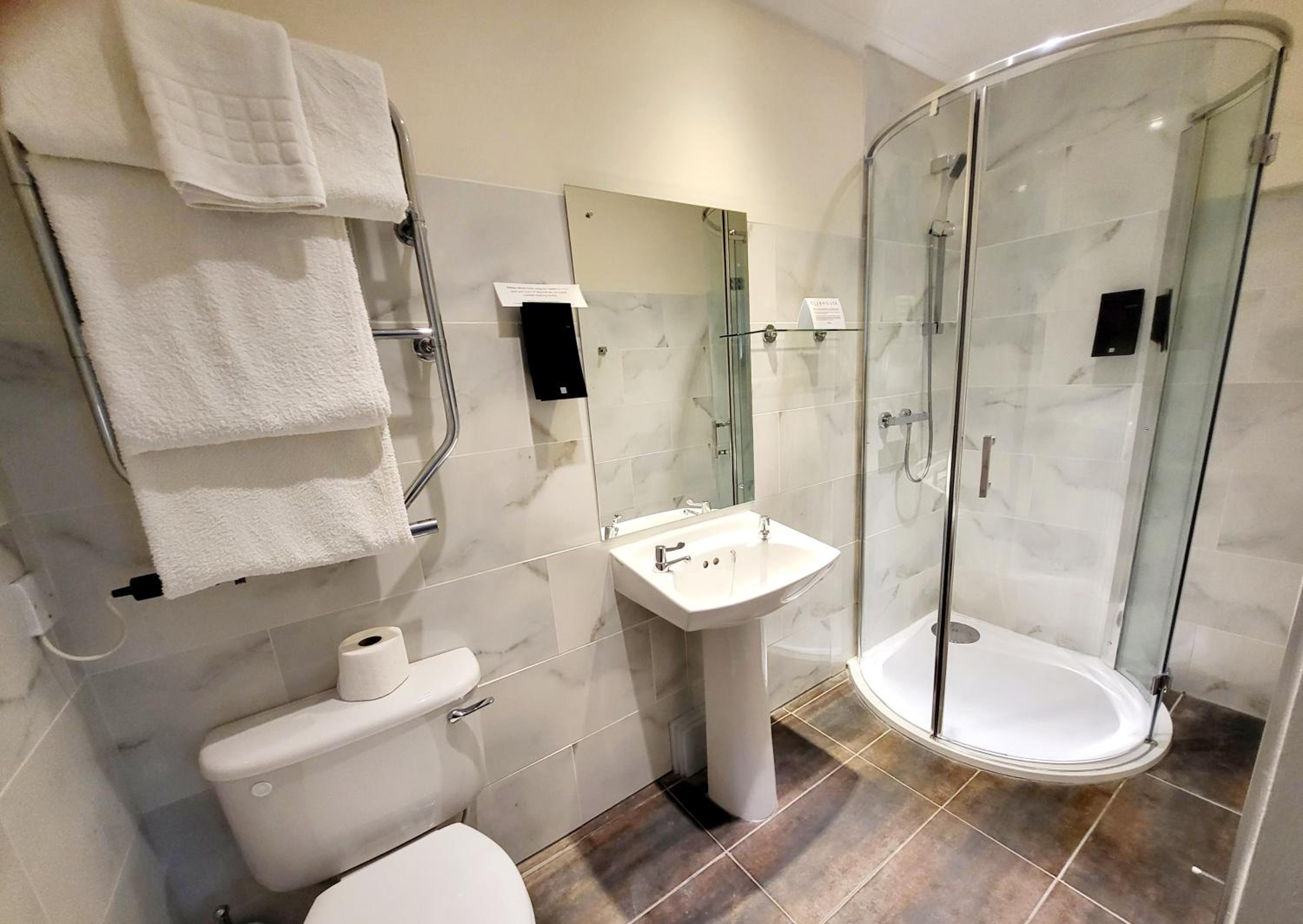 On arrival at the hotel I had to contact a mobile number that was not the correct recognised number. I then called the number of the hotel nearby "West End Hotel". After a couple of minutes I was let into the hotel. I was given the key to Room 6 (1 key). My hotel stay was 2 nights (Sunday / Monday). On the second day and returning to the hotel the front door was locked. I then let myself into the hotel by using my key for room 6 (is this worrying or not). The hotel was not open for business i.e. Bar or Restaurant. Only the rooms were let out. I was informed that the hotel would be open for business after 1st April. Room was clean and shower room (en-suite) was clean. Food at the West End Hotel was nice and reasonably priced. The 1 key access to the hotel and Room 6 leaves a lot to be desired. The hotel must address this issue. On arrival at the hotel on the Sunday the 1 key wasn't an issue as I believe that I was the only occupant of the hotel on Sunday. The hotel had additional rooms let on the Monday.