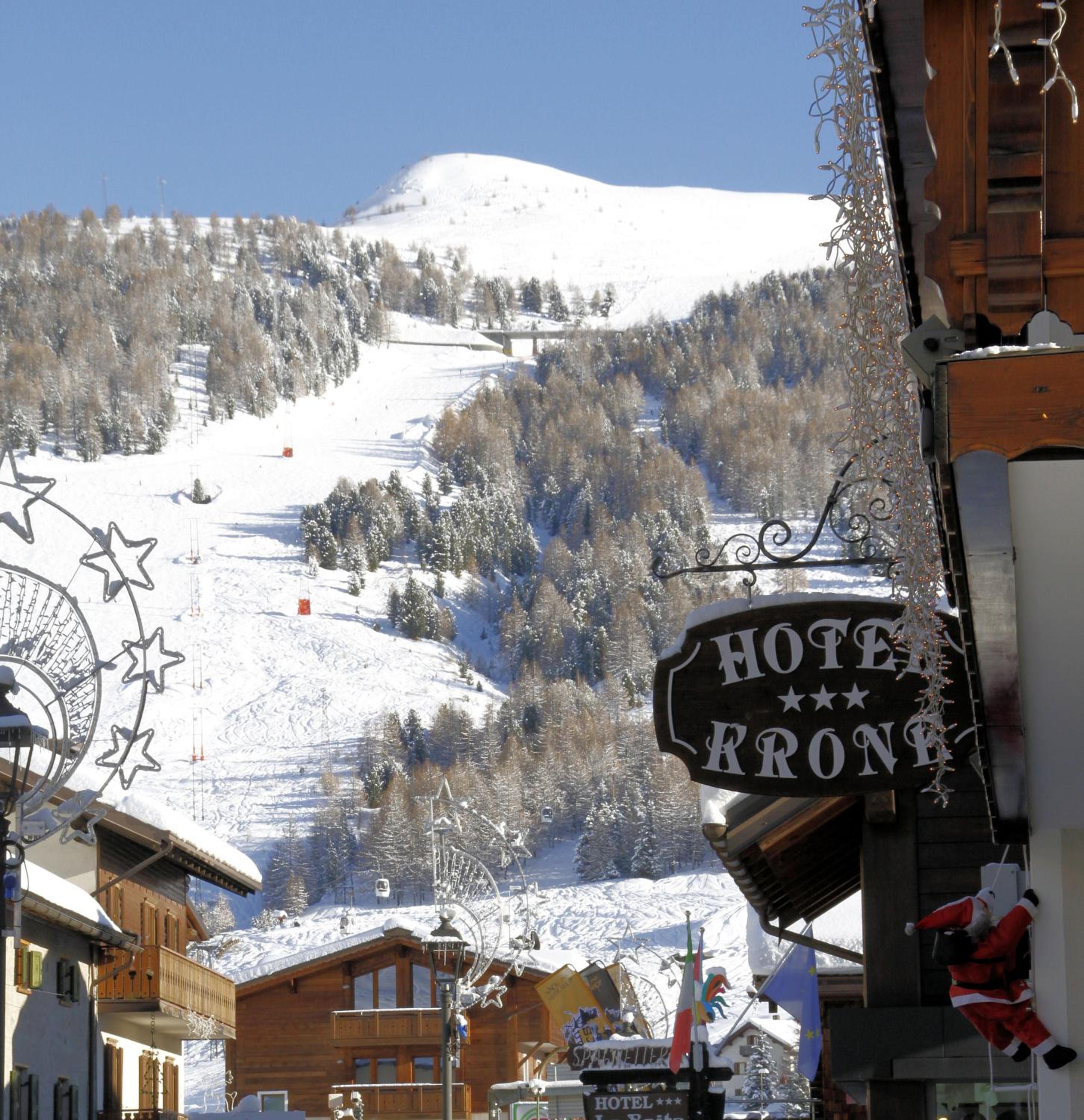The Hotel Krone is situated in the heart of Livigno's pedestrian area, a mere 200 meters from the Mottolino ski lifts.
