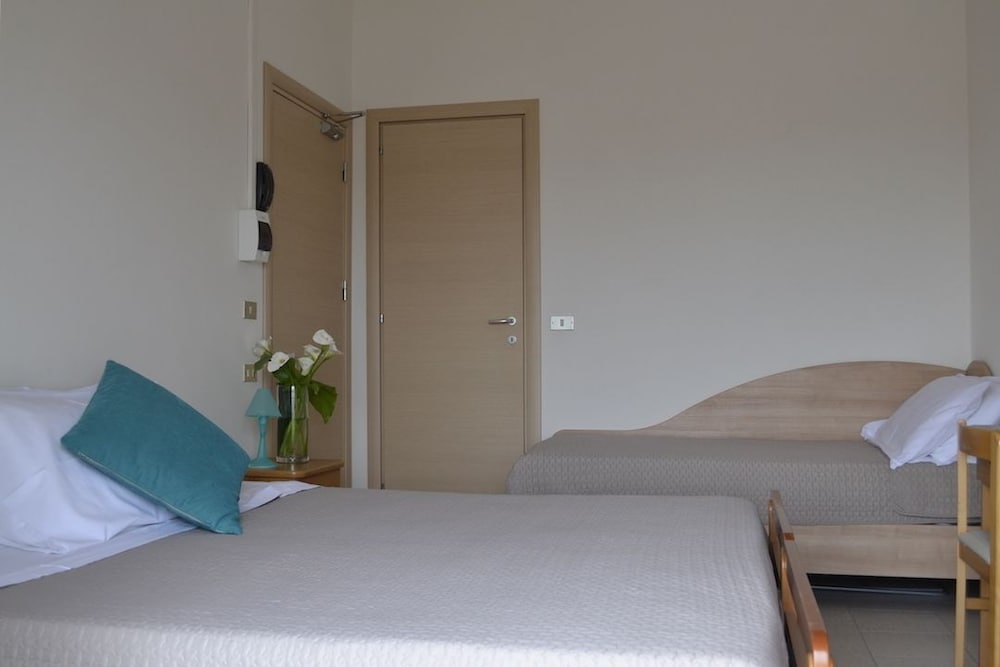 Staff cordiale e disponibile... A pochi metri dalla spiaggia, molto comodo per chi ha bambini. Colazione abbondante ... Unica pecca la porta finestra del terrazzo vibrava e sbatteva ogni volta che si apriva o chiudeva una porta nel corridoio e la stanza era un po' piccola, ma ben pulita e fresca.