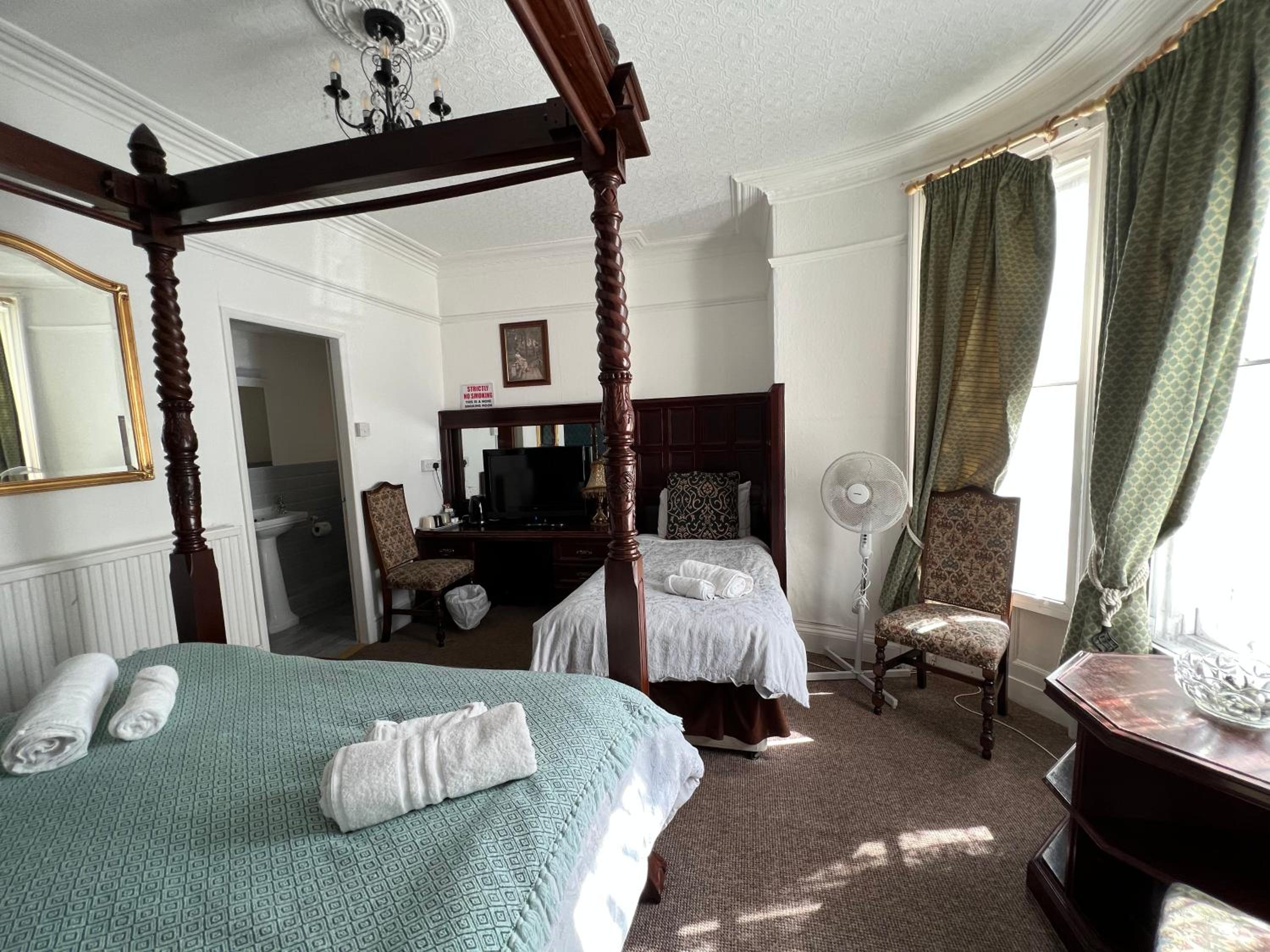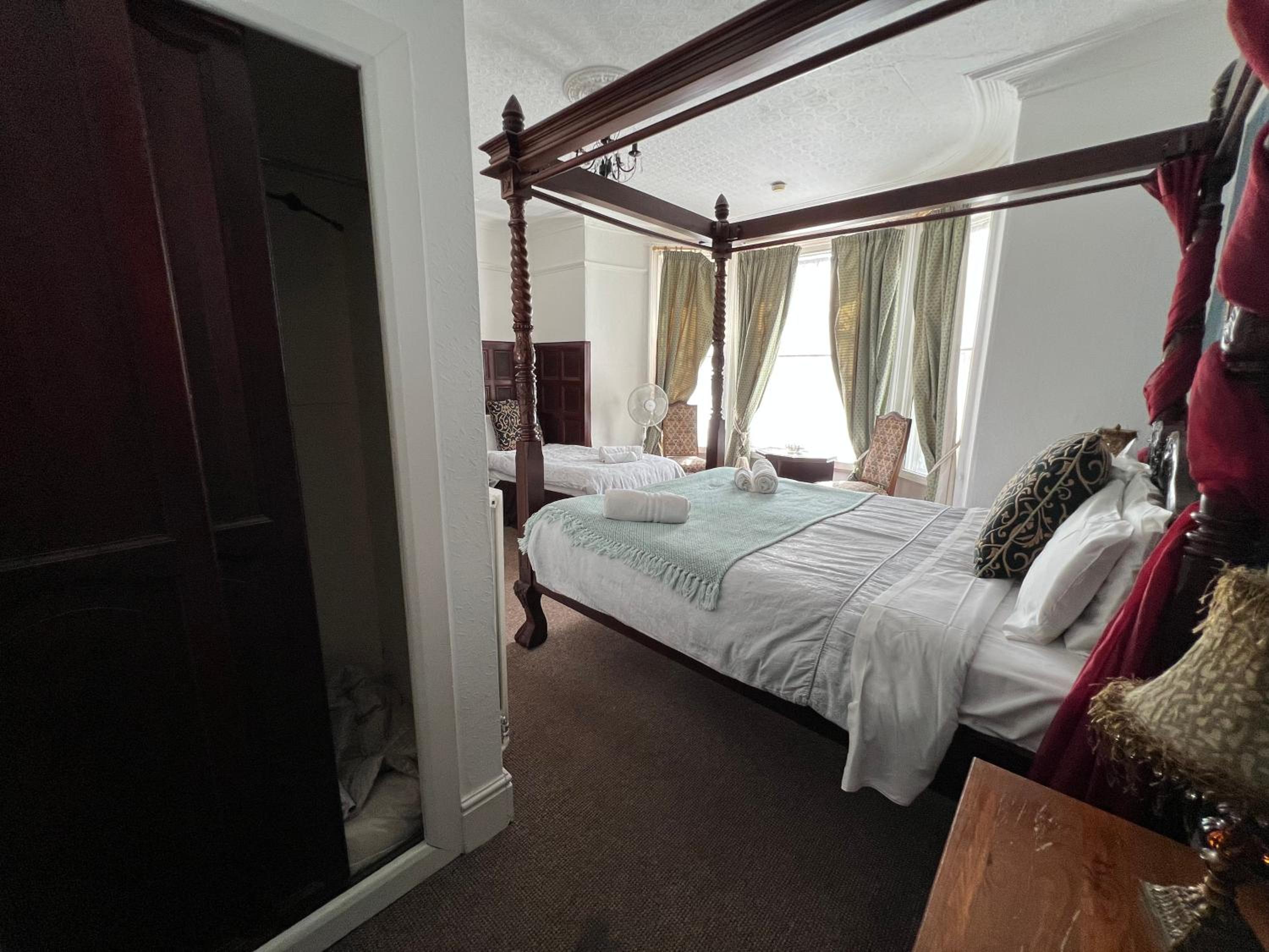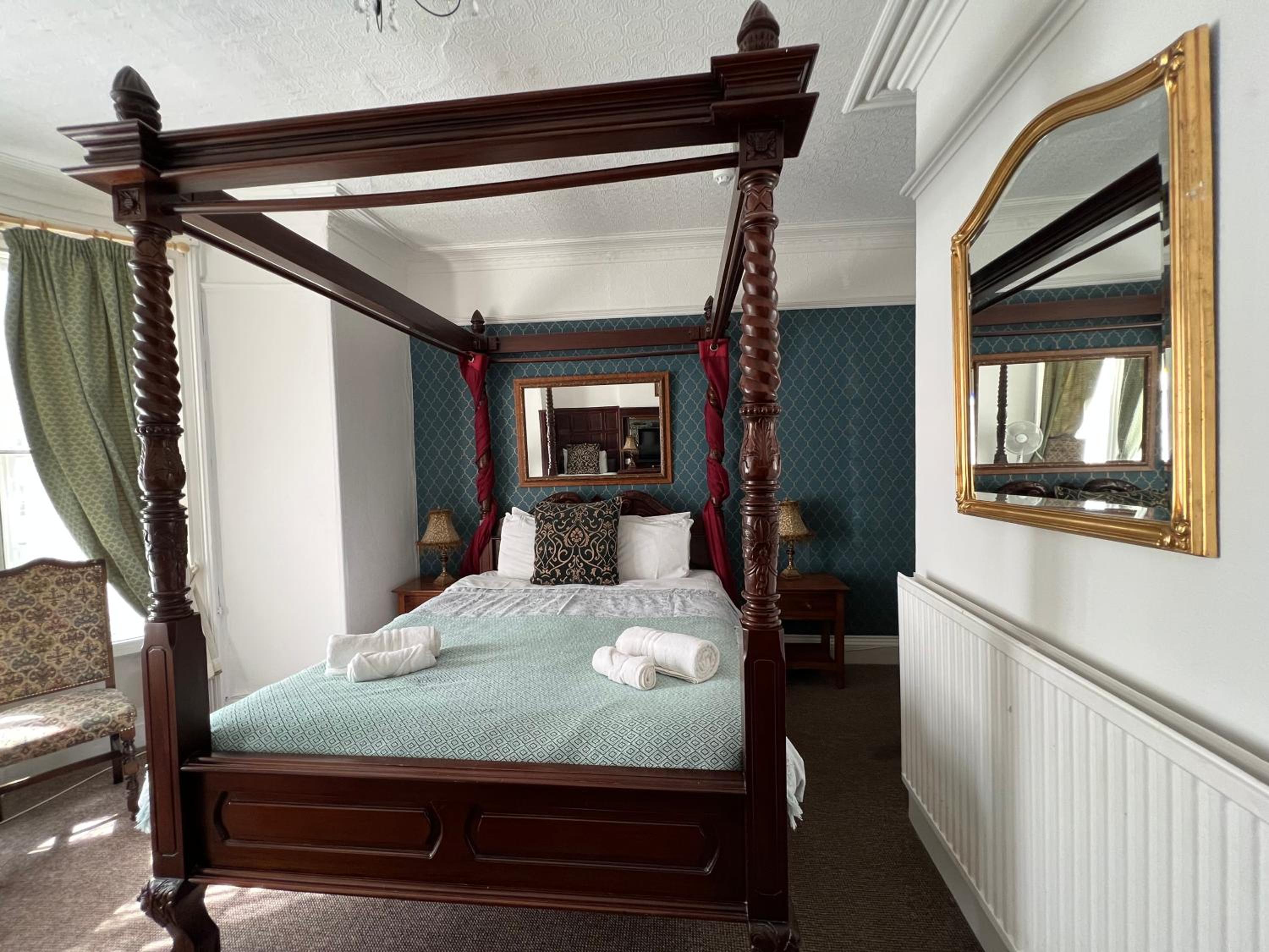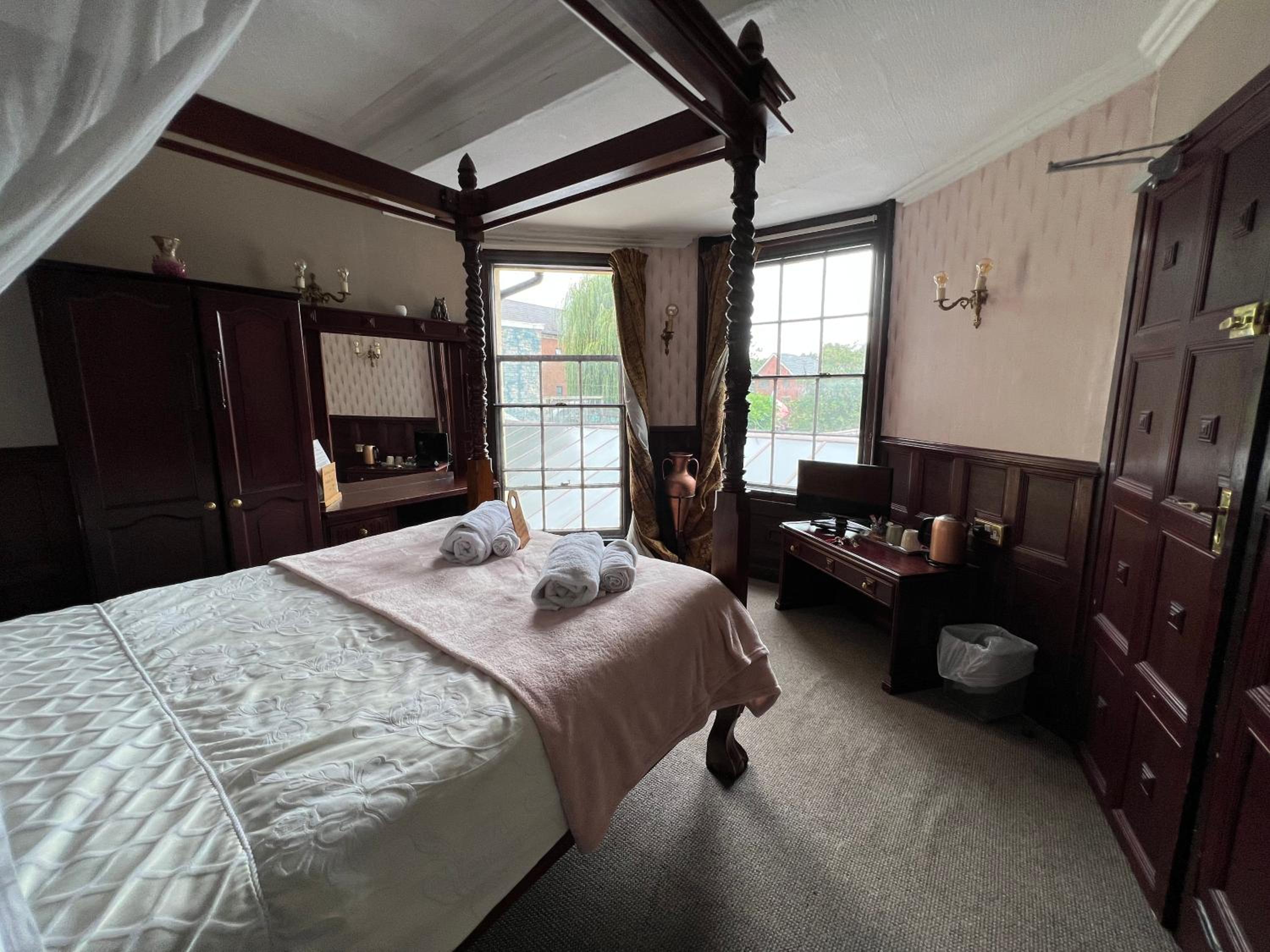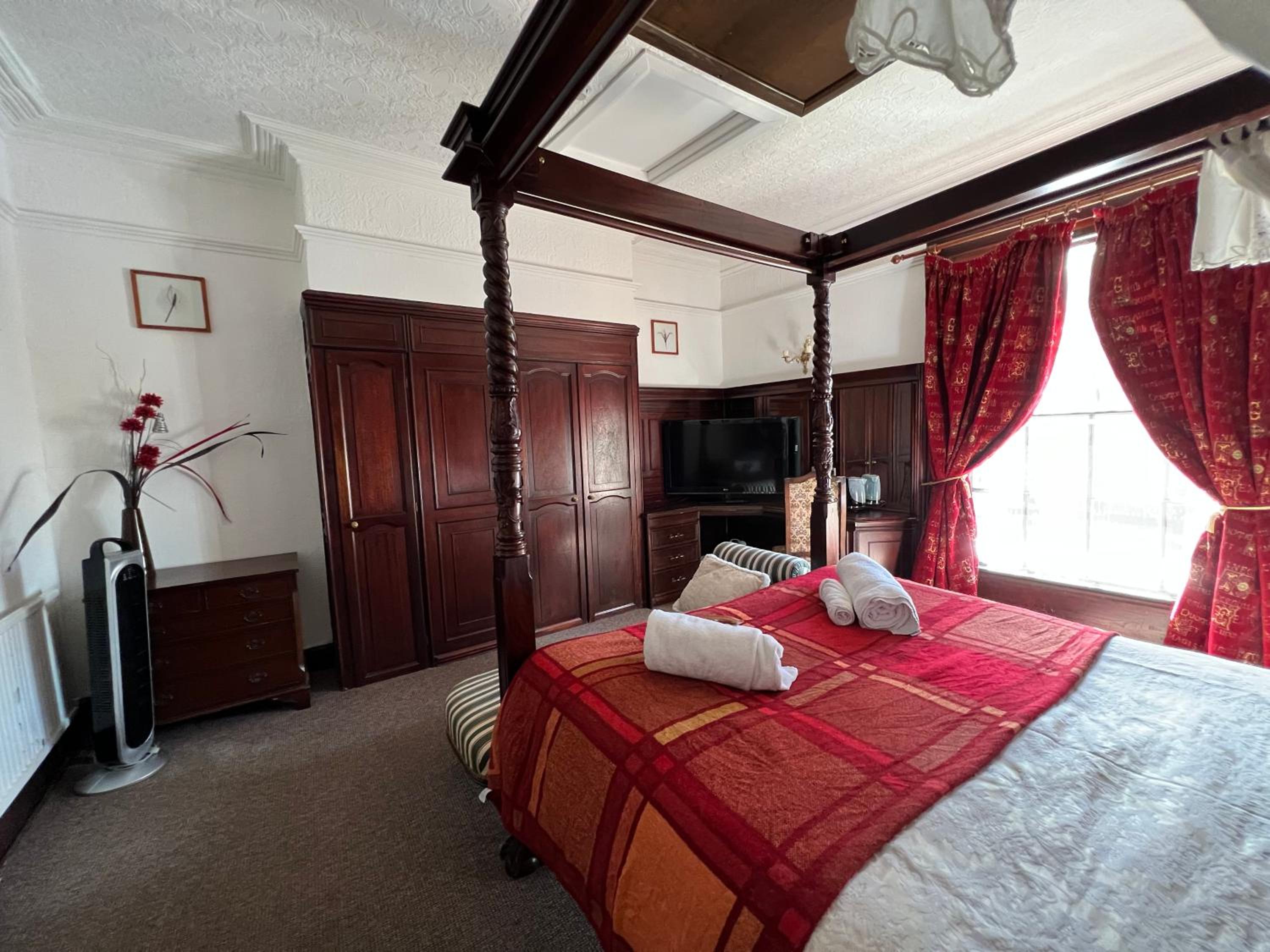 Bed great. Very extravagant. Lovely room despite being run down. Lots of character. Telly, tea and coffee. All good