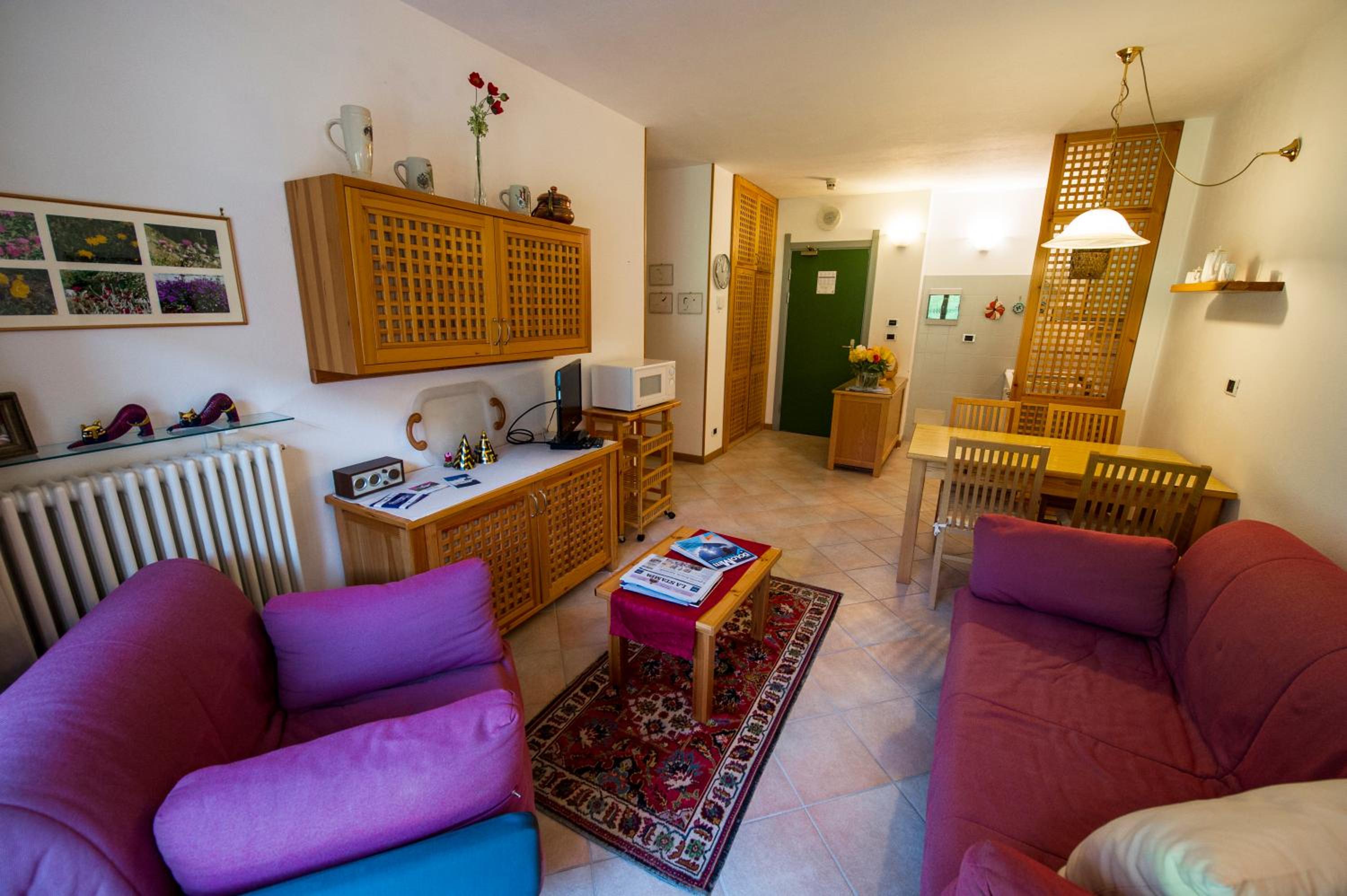Appartamento spazioso e fornito di tutto l’occorrente (esempio: microonde/ lavastoviglie ecc). Apprezzata sia l’area giochi grande e piena di giochi di tutti i tipi e per tutte le età, che la piscina con vista sulle montagne. Staff disponibile per check in e out!