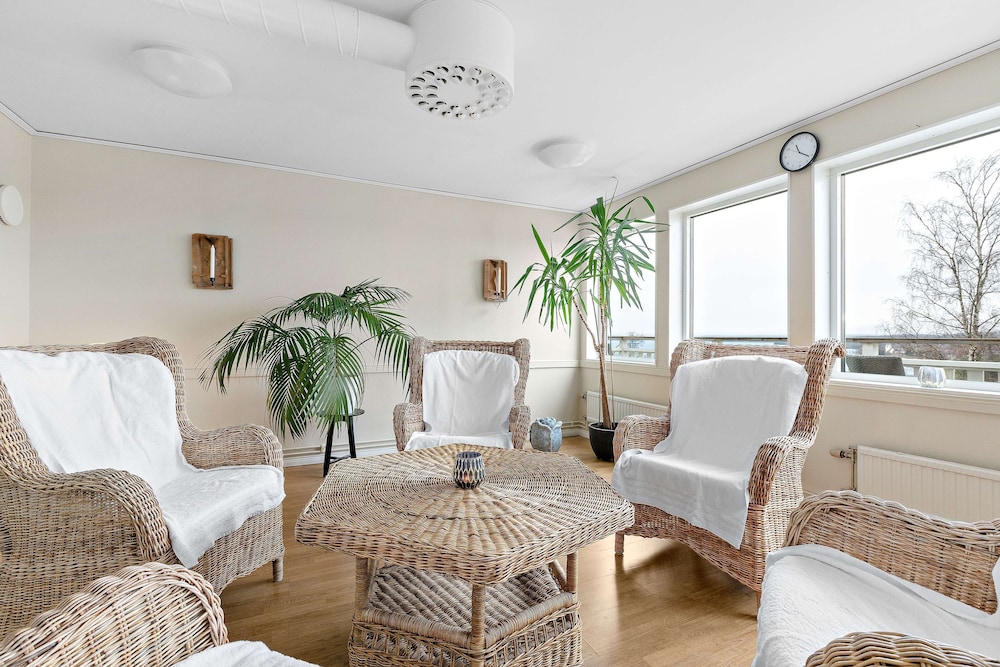 Bra ställe med fantastisk utsikt. Väldigt bra frukost. Trevligt. Begynnande renoveringsbehov, men inget överhängande.