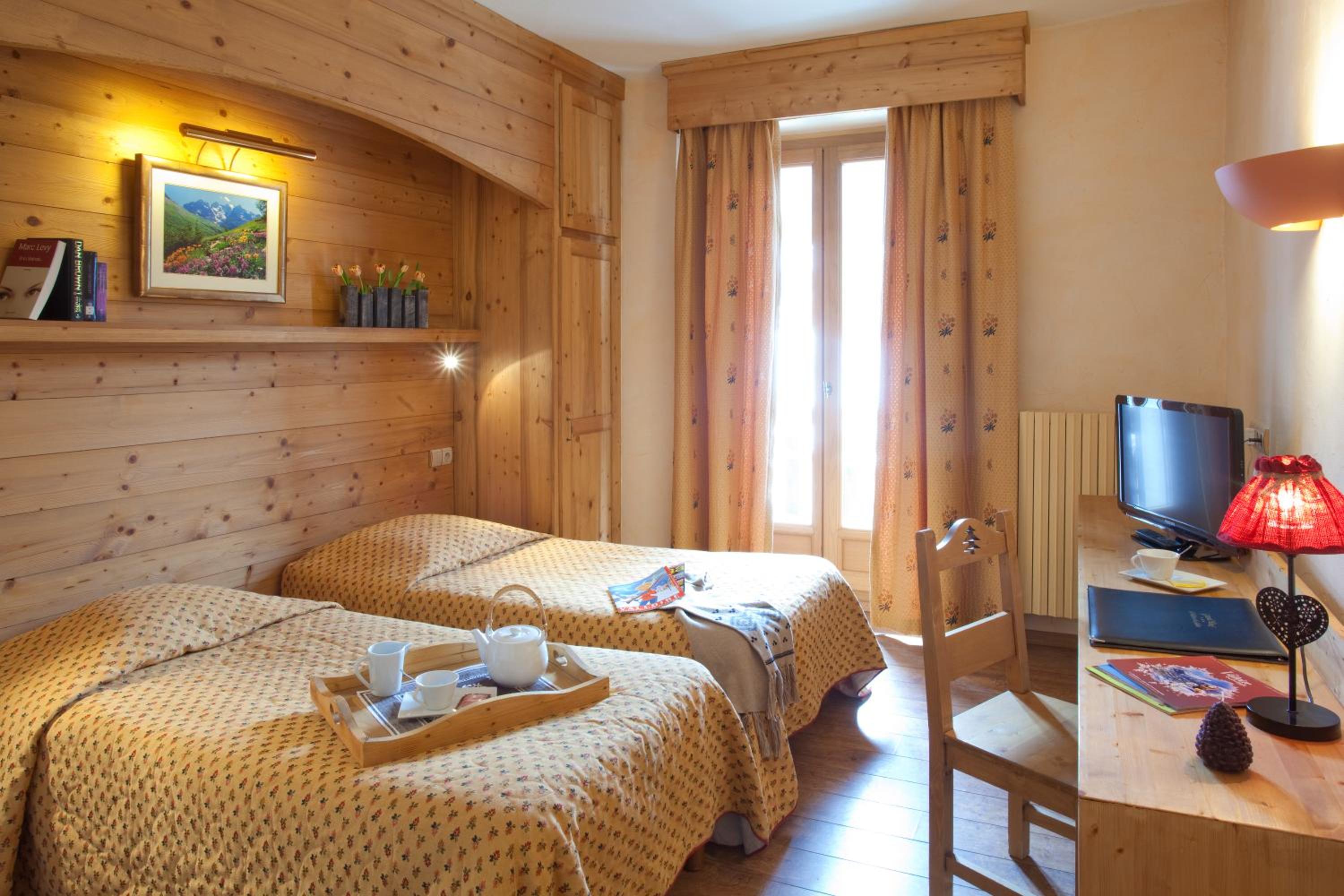 The Logis Grand Hotel in Valloire offers comfortable en suite rooms with modern amenities and breathtaking mountain views. Some rooms even feature balconies for an enhanced experience.