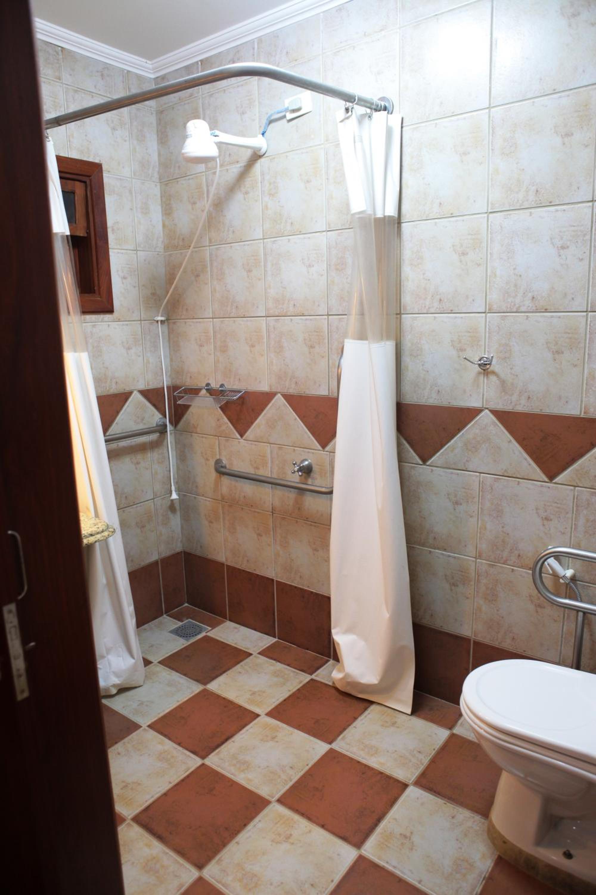 Meu quarto era para ser adaptado pcd, so que com box apertado e banheiro pequeno, impossível para um cadeirante, mas box vazava a água para pé da pia o que dificulta seu uso.