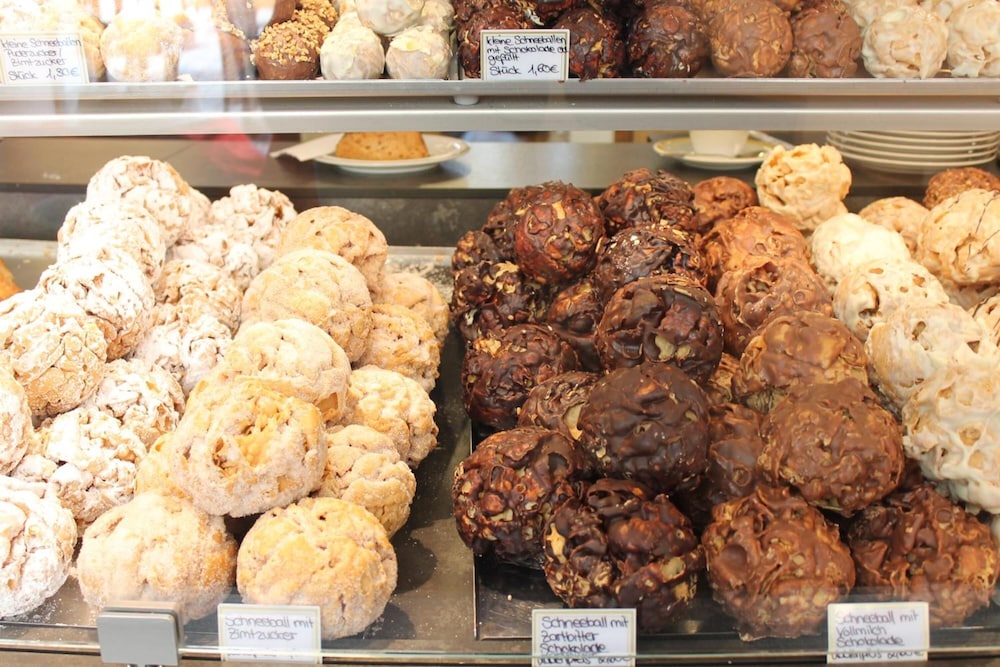 This hotel is located above bakery, and the breakfast provided comes straight off the bakery display. It's AMAZING! The food, the location, the hospitality of the hosts, all fantastic. We can't say enough good things about this hotel. The only downfall is the street noise, but when you're located on the main area of the town, you have to expect that a bit. We would stay here again without hesitation!