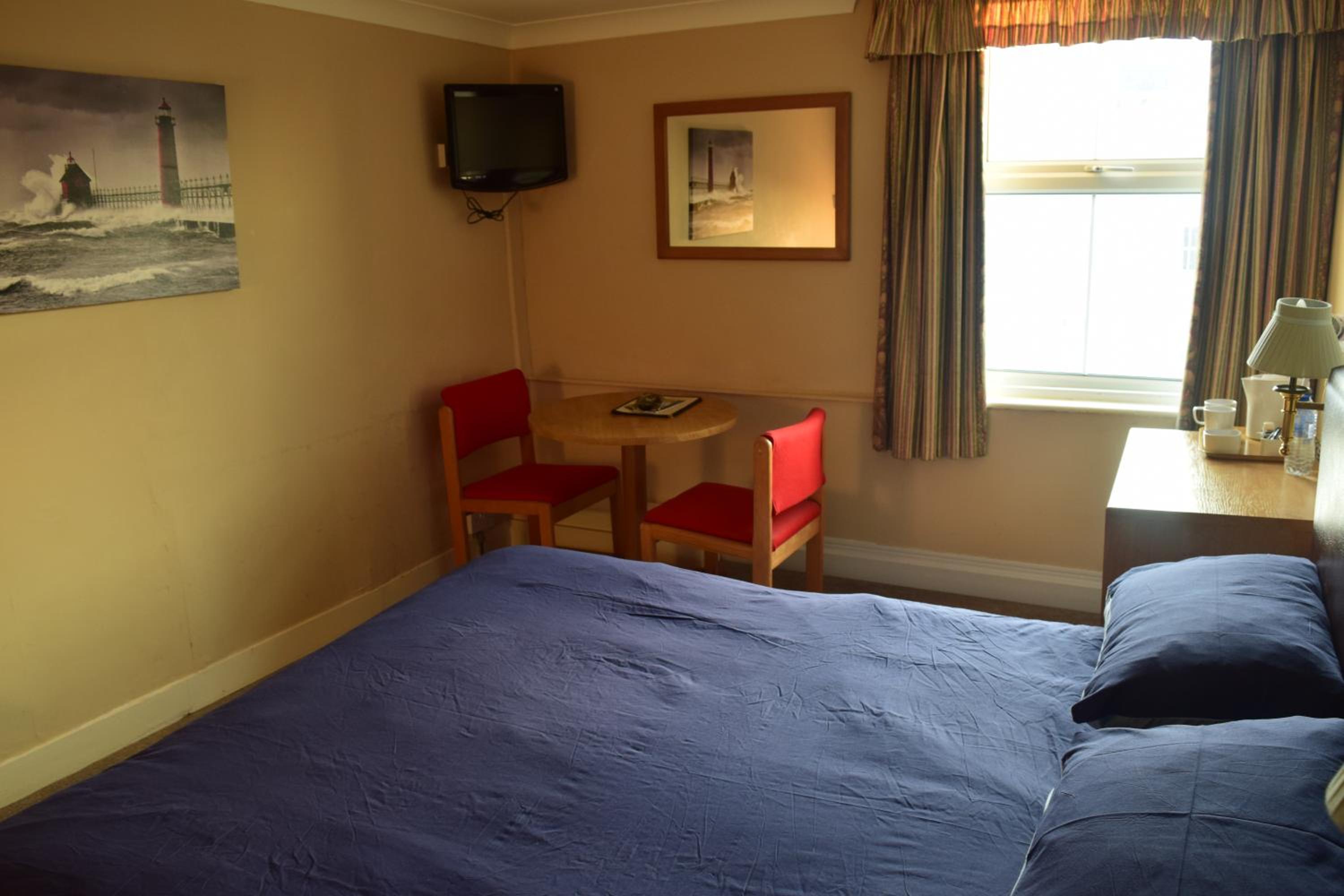 We only wanted a place to sleep for one night. The staff were very friendly and helpful The hotel was tired, not spotlessly clean but clean enough. The room was huge and the bed was comfy and very clean. There were tea and coffee faculties in the room. The en-suite was clean, lovely large towel.For a 2 star hotel I wasn’t expecting much as used to 4 or 5 star but would stay there again if needs be. We didn’t eat there so can’t comment about the food.