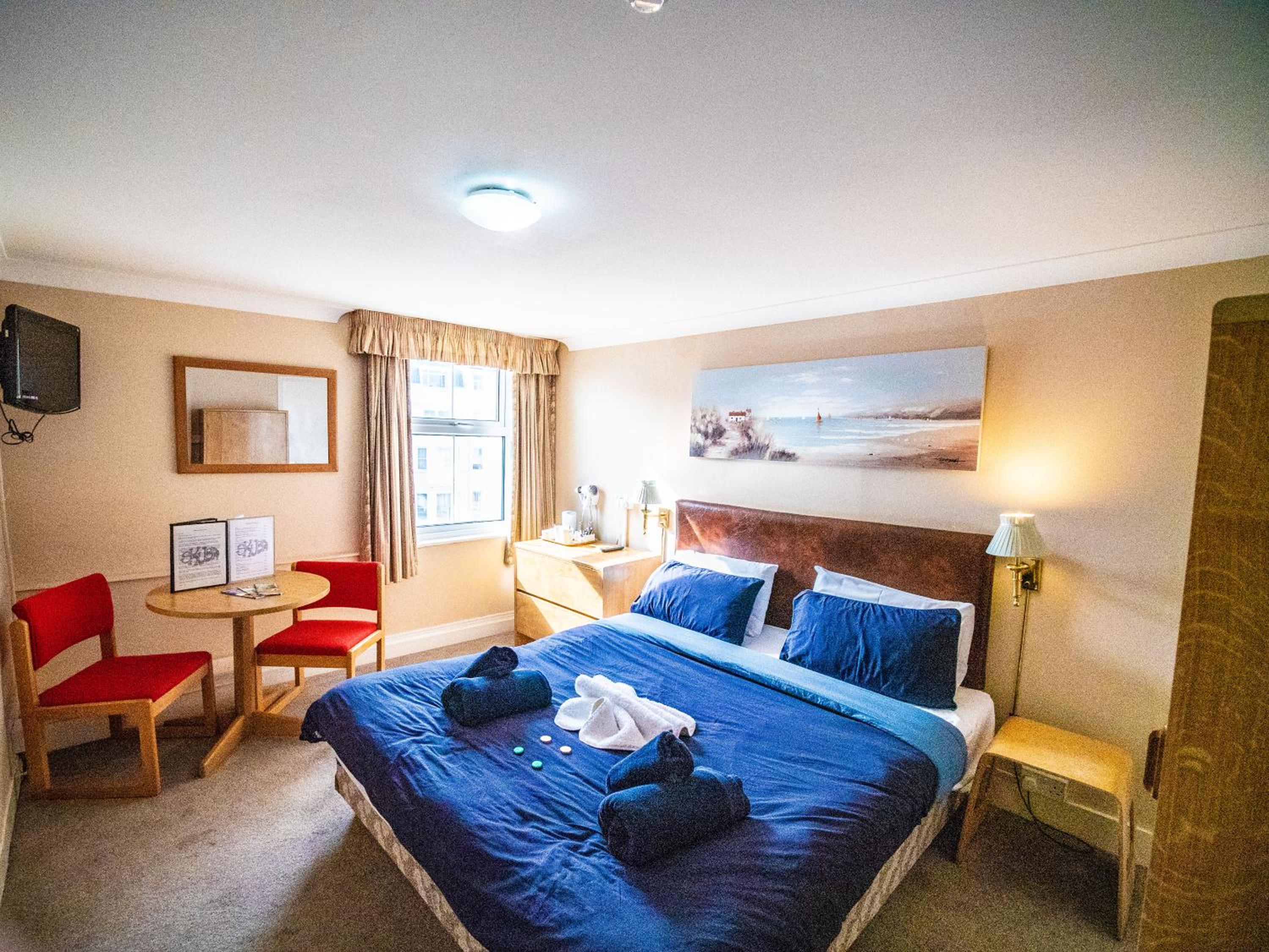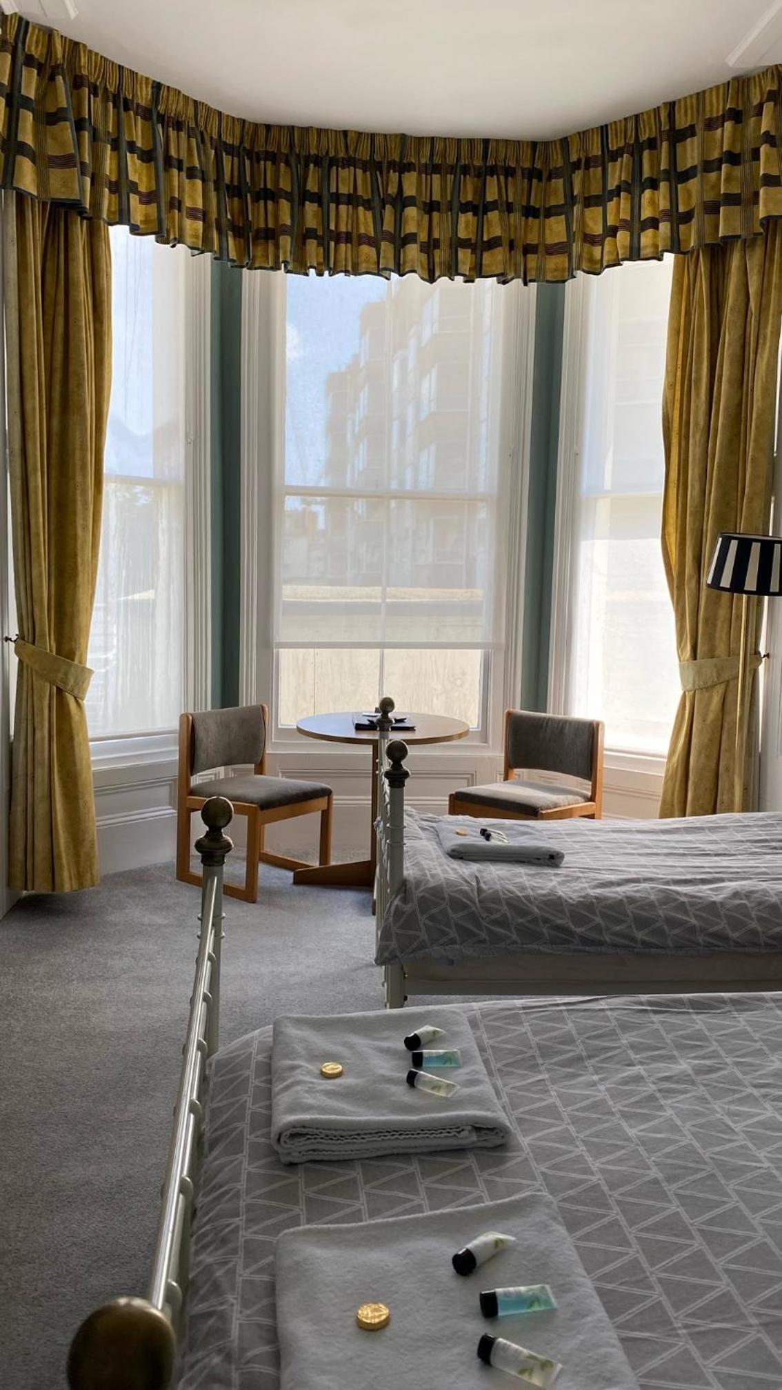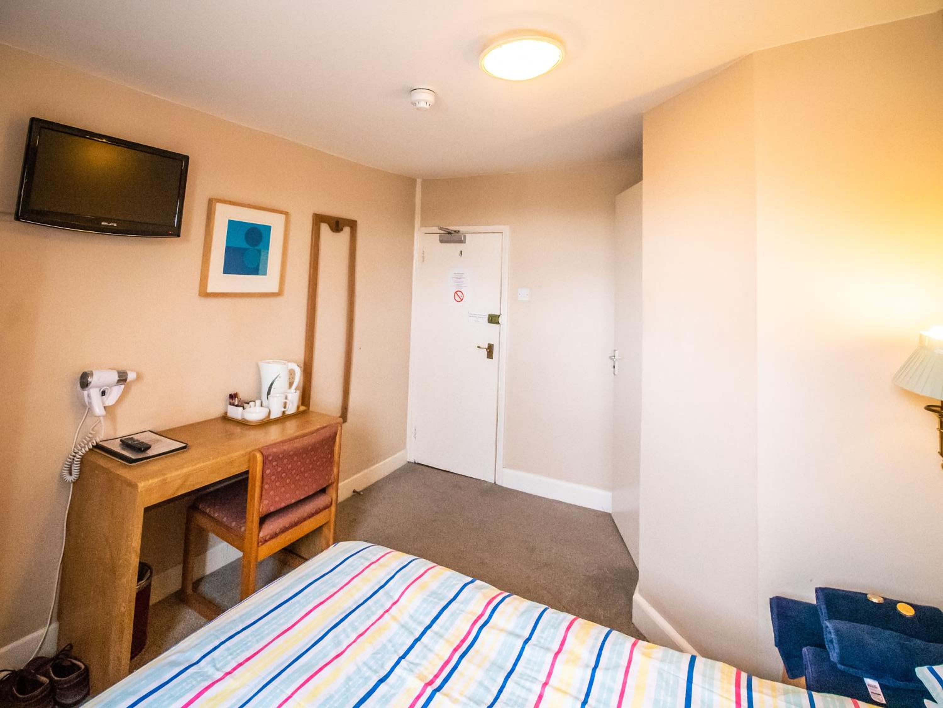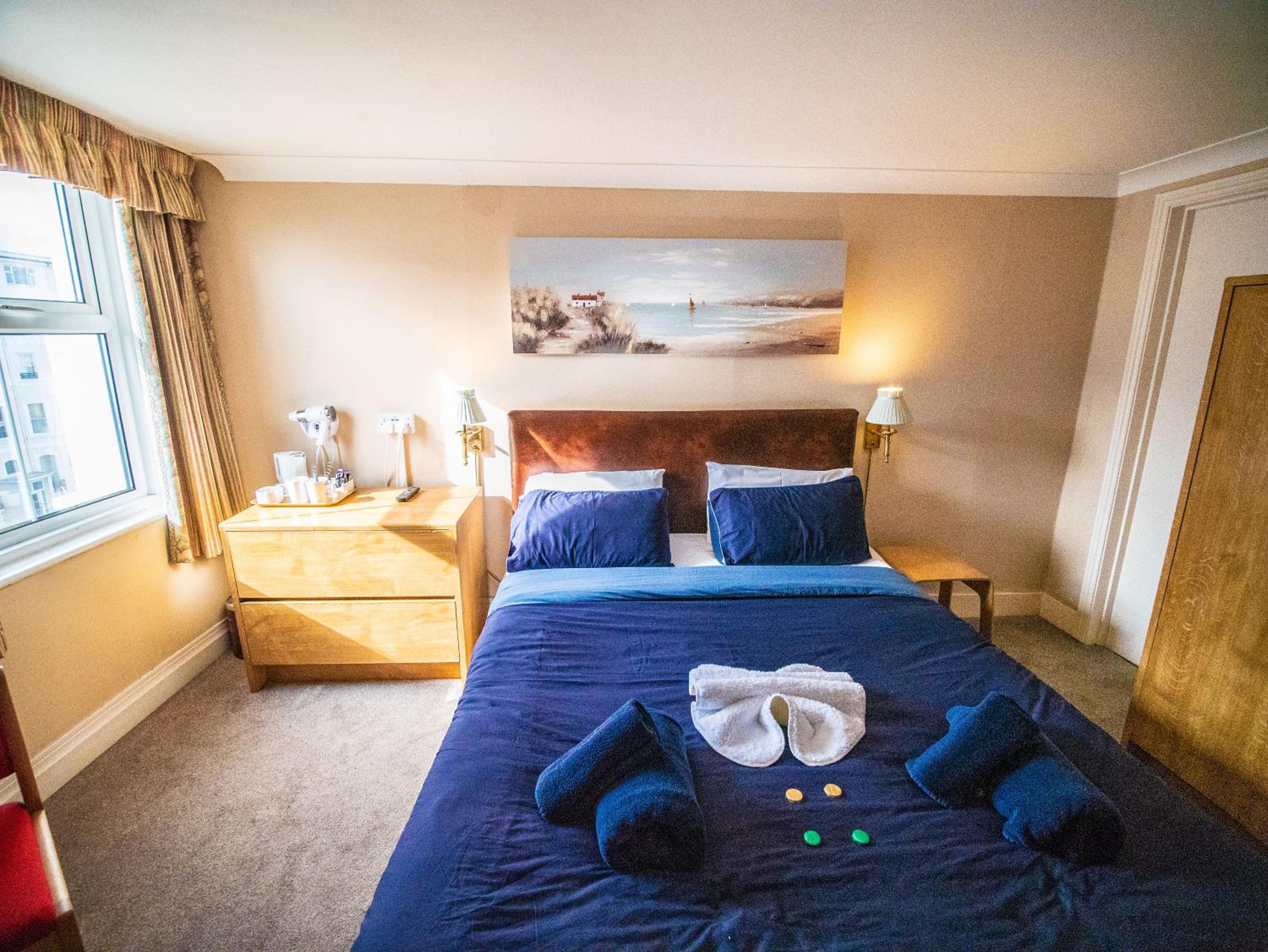 Both the room and en suite were spacious (the en suite had a lovely large sized basin) I had something of a sea-view which was unexpected. The hotel was well located for my purposes. The kettle was full size and boiled quickly. I was gladly given more teabags when I requested them. Towels were clean and presented on the bed with shower-gel, shampoo and conditioner.