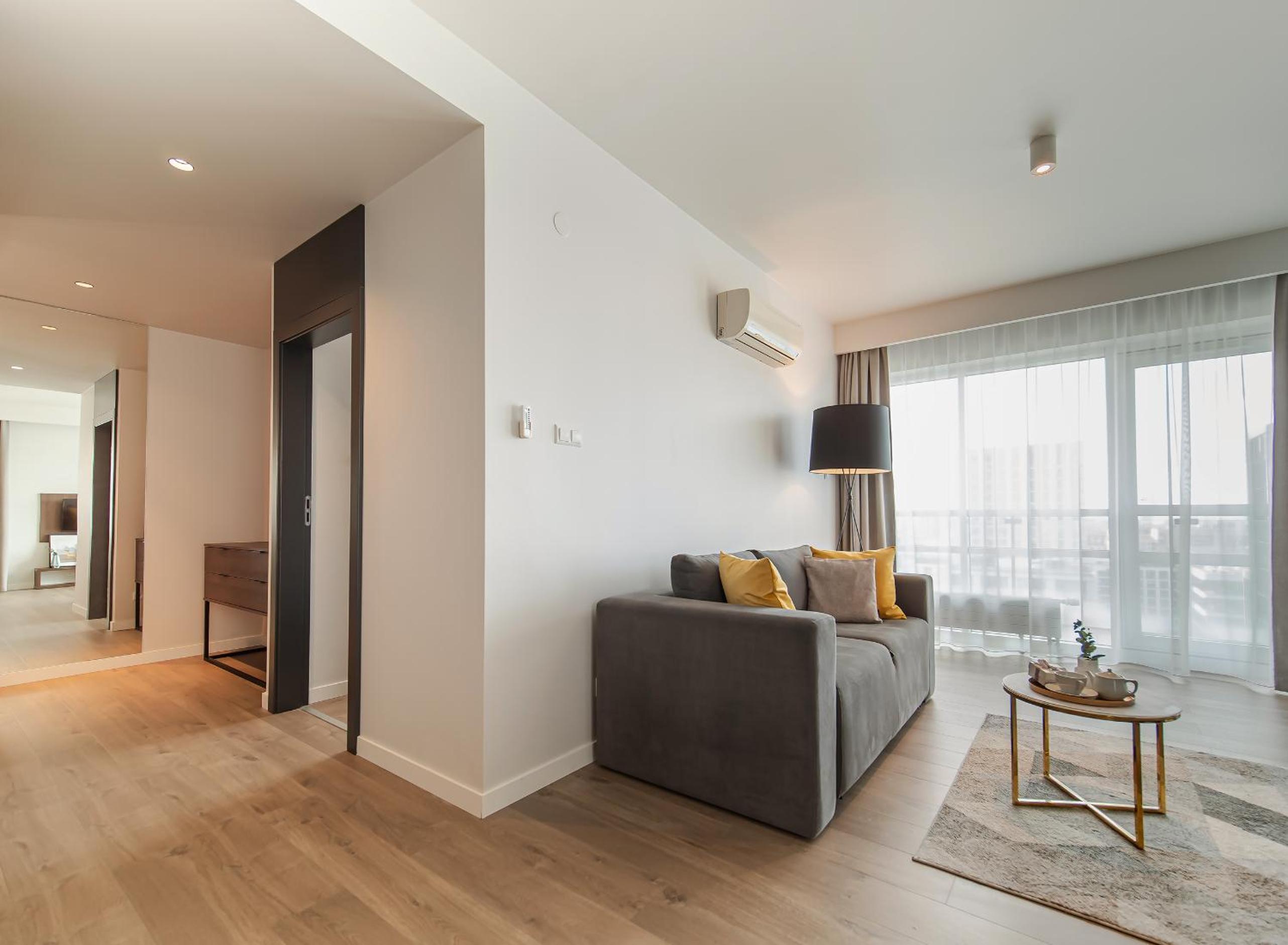 Platinum Residence, located near Warsaw's center, offers spacious apartments with unique designs and kitchenettes equipped with modern amenities.