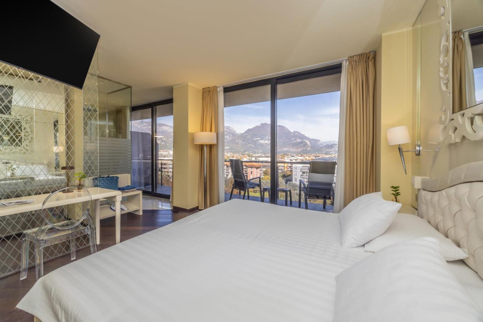 The bright and air-conditioned rooms at Garda Suite Hotel feature wood floors, a balcony, and free Wi-Fi. Guests can unwind with a flat-screen TV with satellite channels, a minibar, and complimentary pool towels. Bathrobes and slippers are also provided for added comfort.
