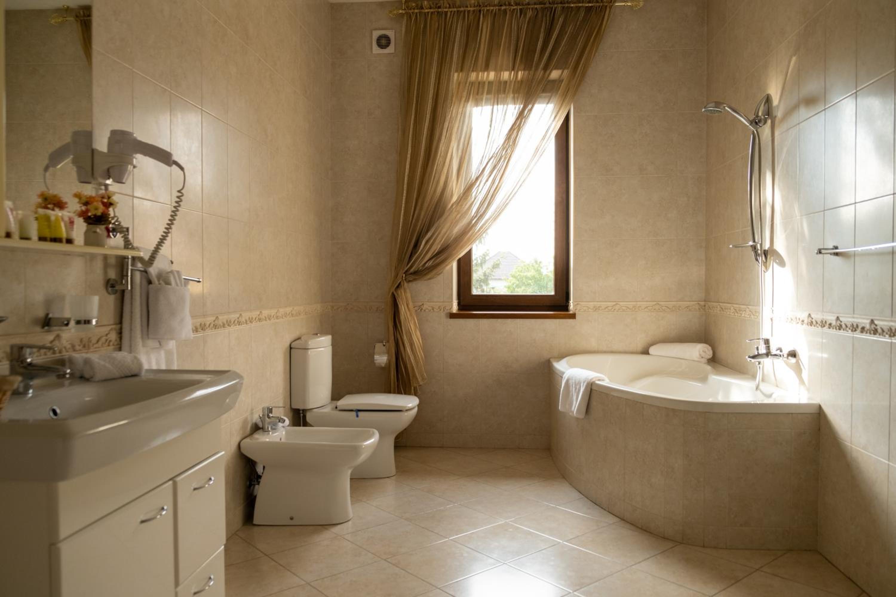 The room was spacious and nicely designed with classic furnitures and huge bathroom with jacuzzi. Parking is available both inside and outside the hotel, which is very convenient if you have a car. Overall, it is a great place to stay. Have in mind that the hotel hosts parties as well so at some nights it might get noisy. We didn't mind since it was Christmas season and we were out most of the time.