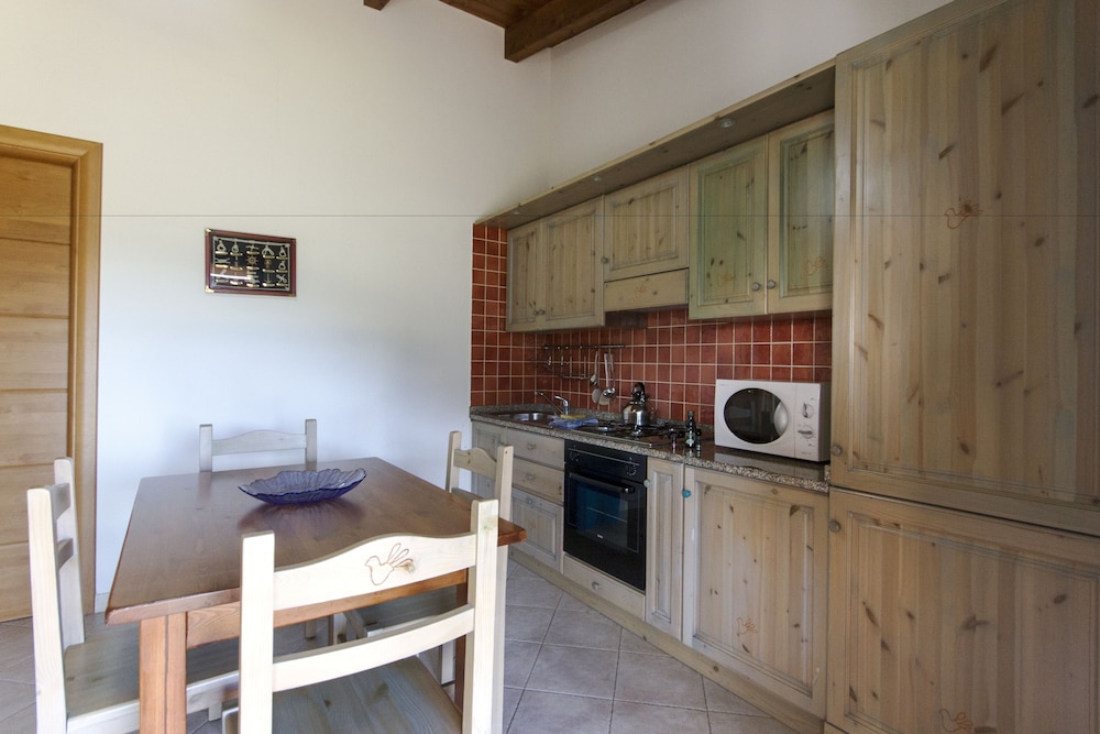 The apartments were new, clean, and well furnished, with beautiful views of the mountains and Alghero. The swimming pools looked appealing but it wasn't quite warm enough to try them. We were amazed and impressed by the farm. They raise pigs, sheep, chickens, and mules and grow olives and vines for olive oil, and wine. The restaurant, Le Pinnette, is an amazing experience, not to be missed. The staff was wonderful, especially Antonella. She was so helpful and brought us eggs from the chickens and a cable so that we could get internet access. The only possible negative is that it is about 20 minutes outside of Alghero, so you have to drive in to town for other restaurants or shopping. However, there is a small grocery store just a few minutes from the farm, which met all of our needs. Our only regret is that we didn't stay longer. It was a fabulous experience!