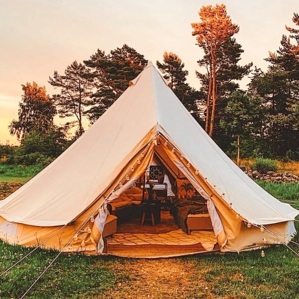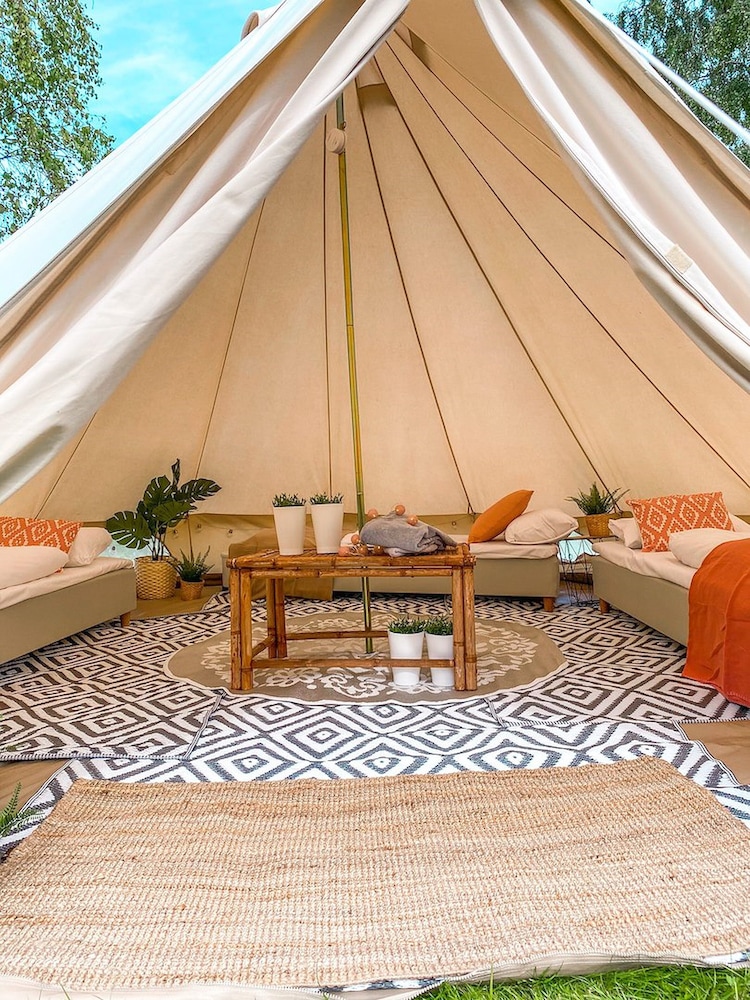Very cosy tent with all you need. Comfy beds, lots of lights, heating if needed and a bottle of cava included. Toilets and shower to use 24/7 in the hotel. Extremelys warm and helpful personell!! Take time to enjoy the beautiful surroundings and their fresh bakery. Nice spa and breakfast. Highly recommended!