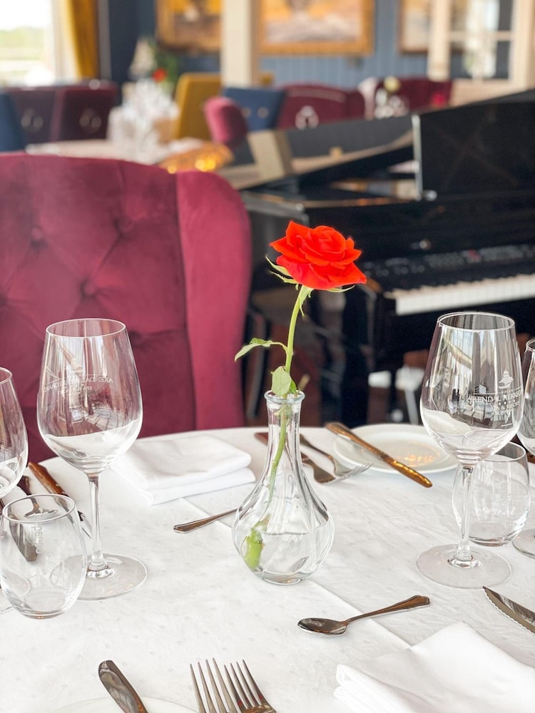 At check-in we met an elderly man who praised the hotel and asked if we would have lunch, because the food was great. In the car park shortly afterwards we met the same man who once again recommended the food. We were stunned when he drove off alone without luggage in a nice car. A quick Google search explained the matter, he was on the owner's side and that there was a lot of negative history and trouble with the state and financial sanctions. When we later had dinner and breakfast, we were really disappointed. The guests pay for financial penalties and led to boring and dry-fried salmon and potatoes for dinner and Fridaybread on Monday, and a very reduced selection. Far below what one would expect from even a standard hotel. We saw drinking glasses by the pool when we arrived that had not been cleared when we left. The room had poor ventilation. The air was damp and towels did not dry. We had to sleep with the bathroom fan on full blast all night. Bad vibe. Very nice and helpful staff, we really hope they are treated well.