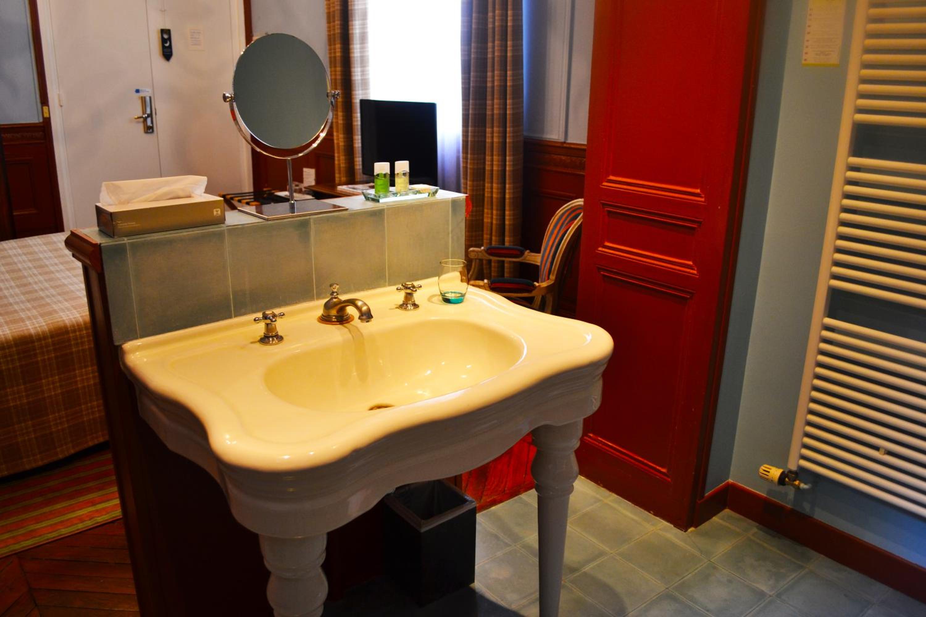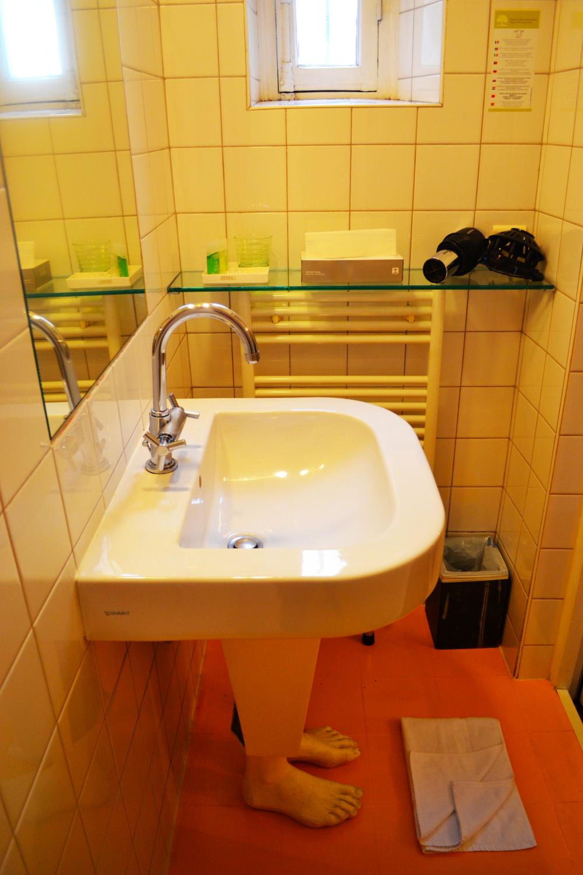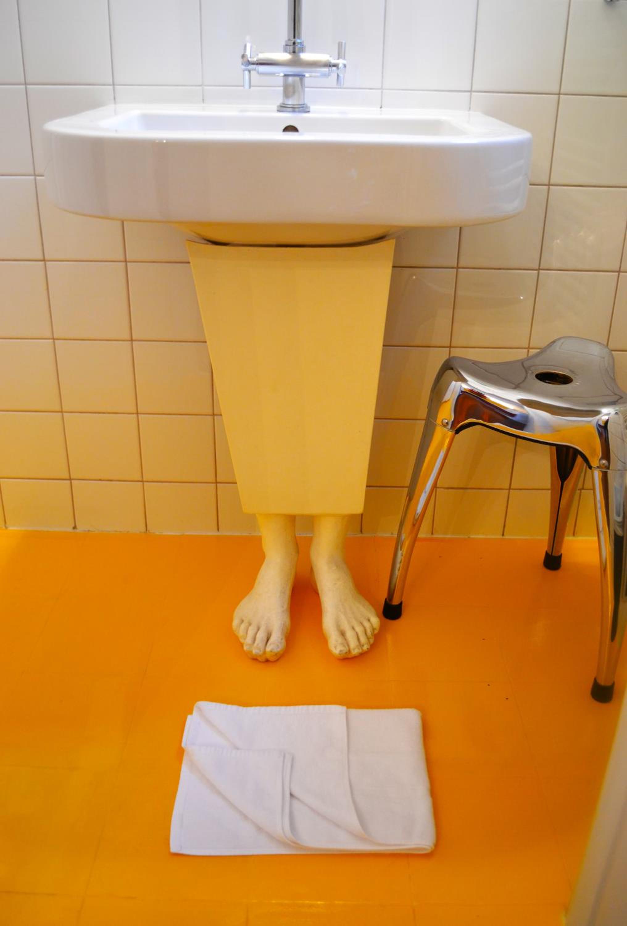 Les pieds sous le lavabo. Un peu impressionnant quand on arrive dans la salle de bain.