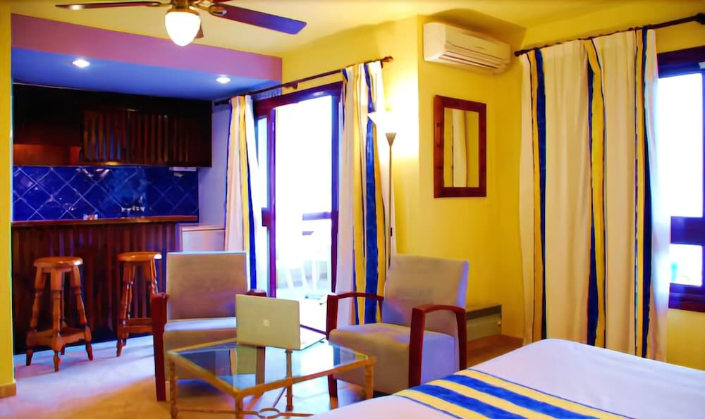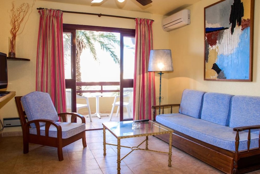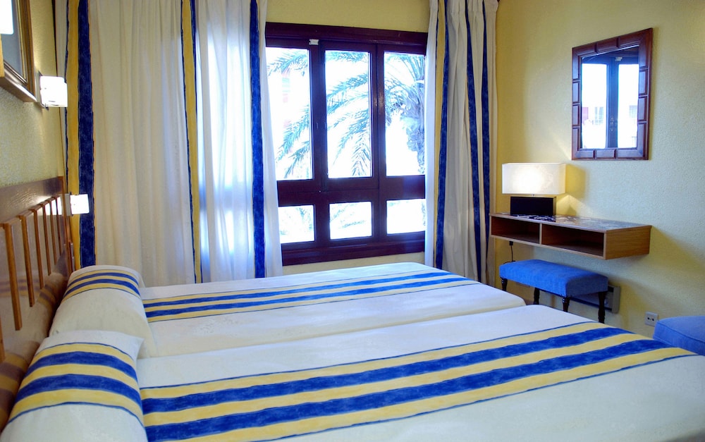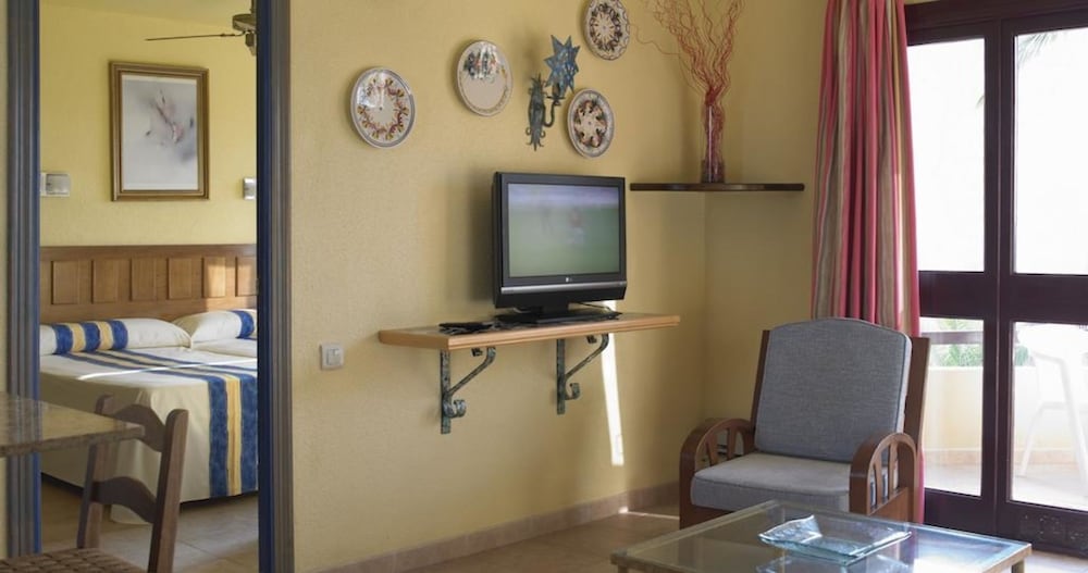Apartamento abandonado muy mal cuidado, viejo, camas y almohadas en mal estado, utensilios inexistentes, olor a porros en los pasillos, pasillos sucios, el detector de humo está de lujo, no funciona. Una de las recepcionistas según quien sea y de donde venga lo atiende de diferentes manera muy mala su atención de la mujer mayor morena rellenita. Te despertaban para medio limpiar y algunas veces ni limpiaban. Dejábamos las toallas en el plato de ducha para q las cambiaran y las encontrábamos sucias colgadas. El restaurante es de lo peor de la zona, me cobraron el menú del bebé de 2 años, porq le metió los dedos a la tarta de su padre, entienden q comió también. La comida no había por donde cogerla sin sal y sin sabor. El salón de juegos infantiles es un asadero de pollo, el aire de lujo y los juguetes dañados todos. Muy caro para lo q es. Si Necesita oscuridad para dormir, no hay persiana