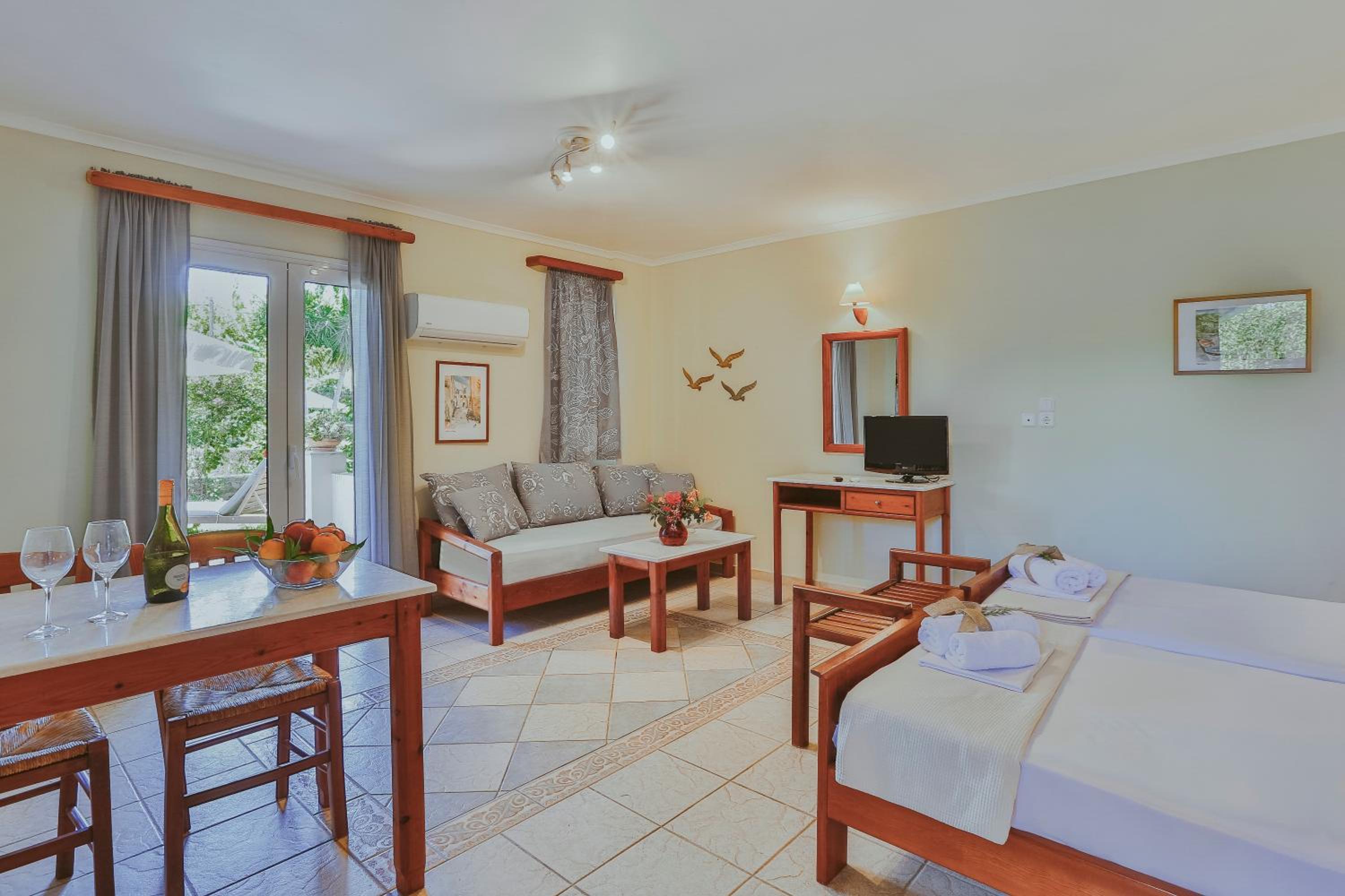 Sunny Garden Aparthotel provides a peaceful retreat near the beach, offering a selection of well-appointed studios and apartments. Guests can enjoy the serene ambiance of private gardens or admire stunning views of the Saronic Gulf from spacious balconies.