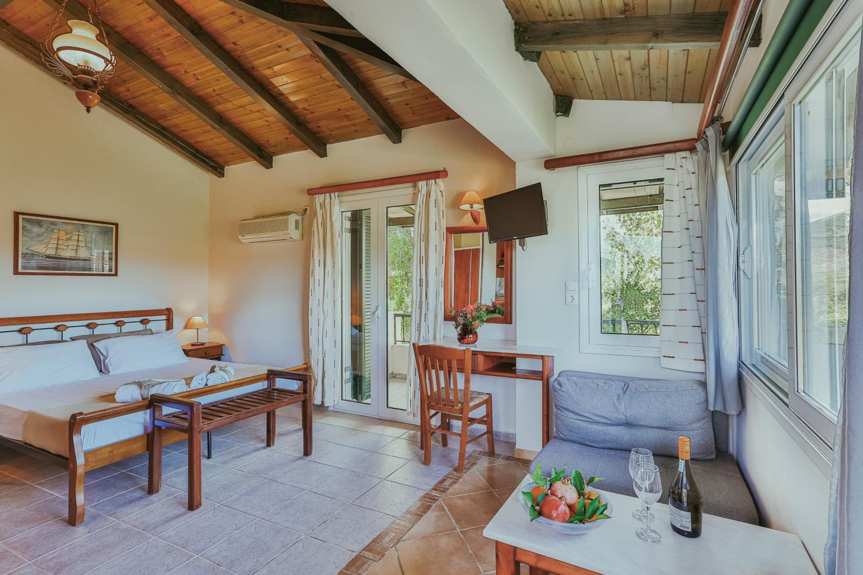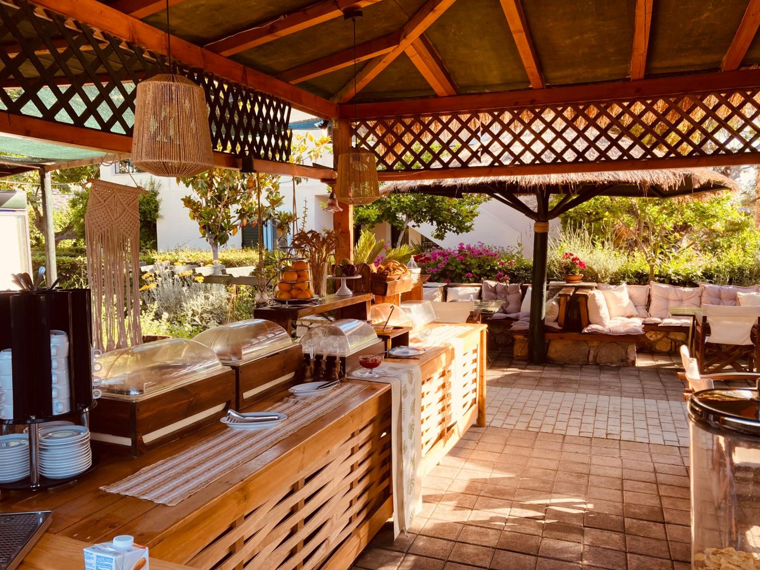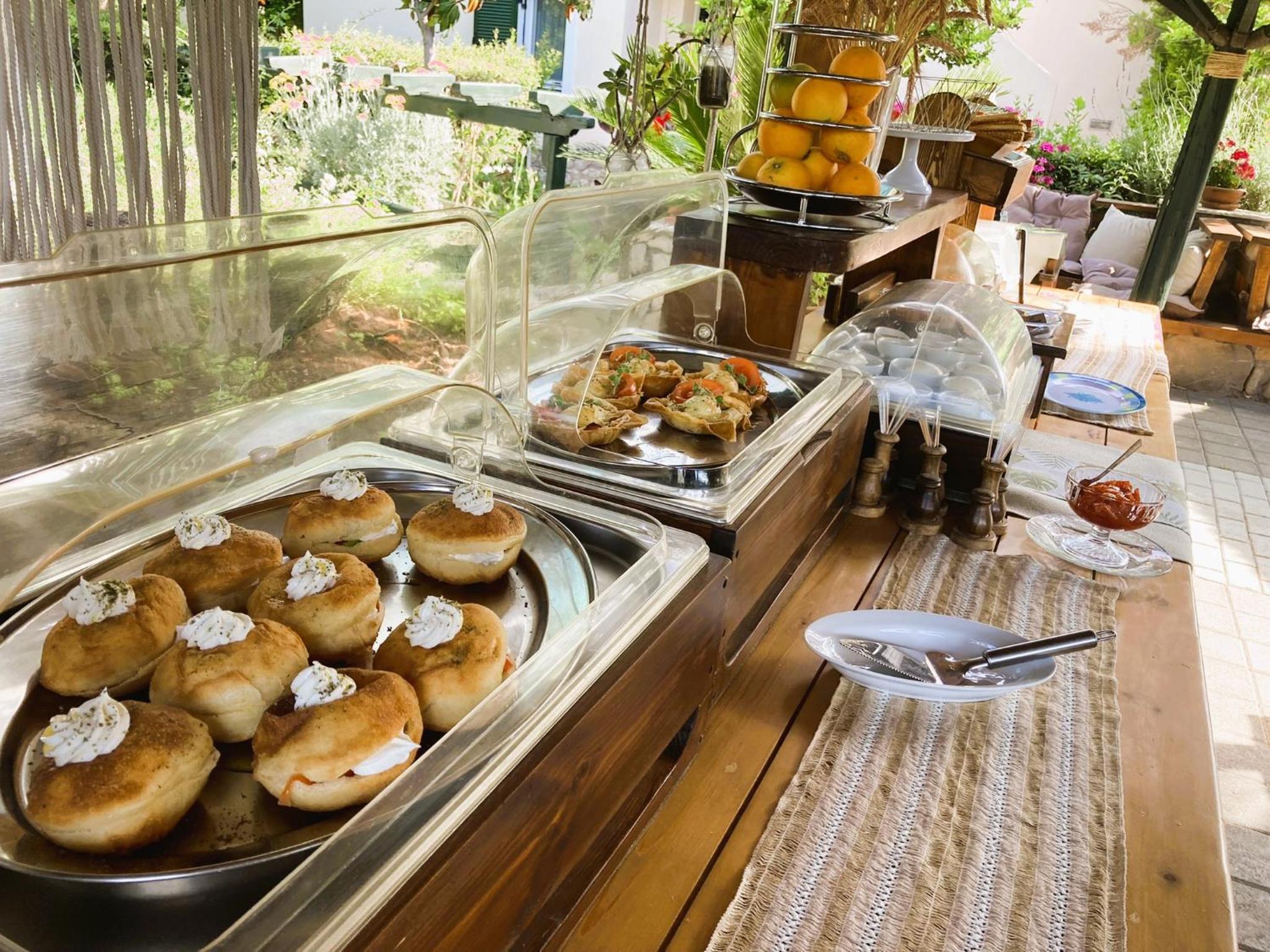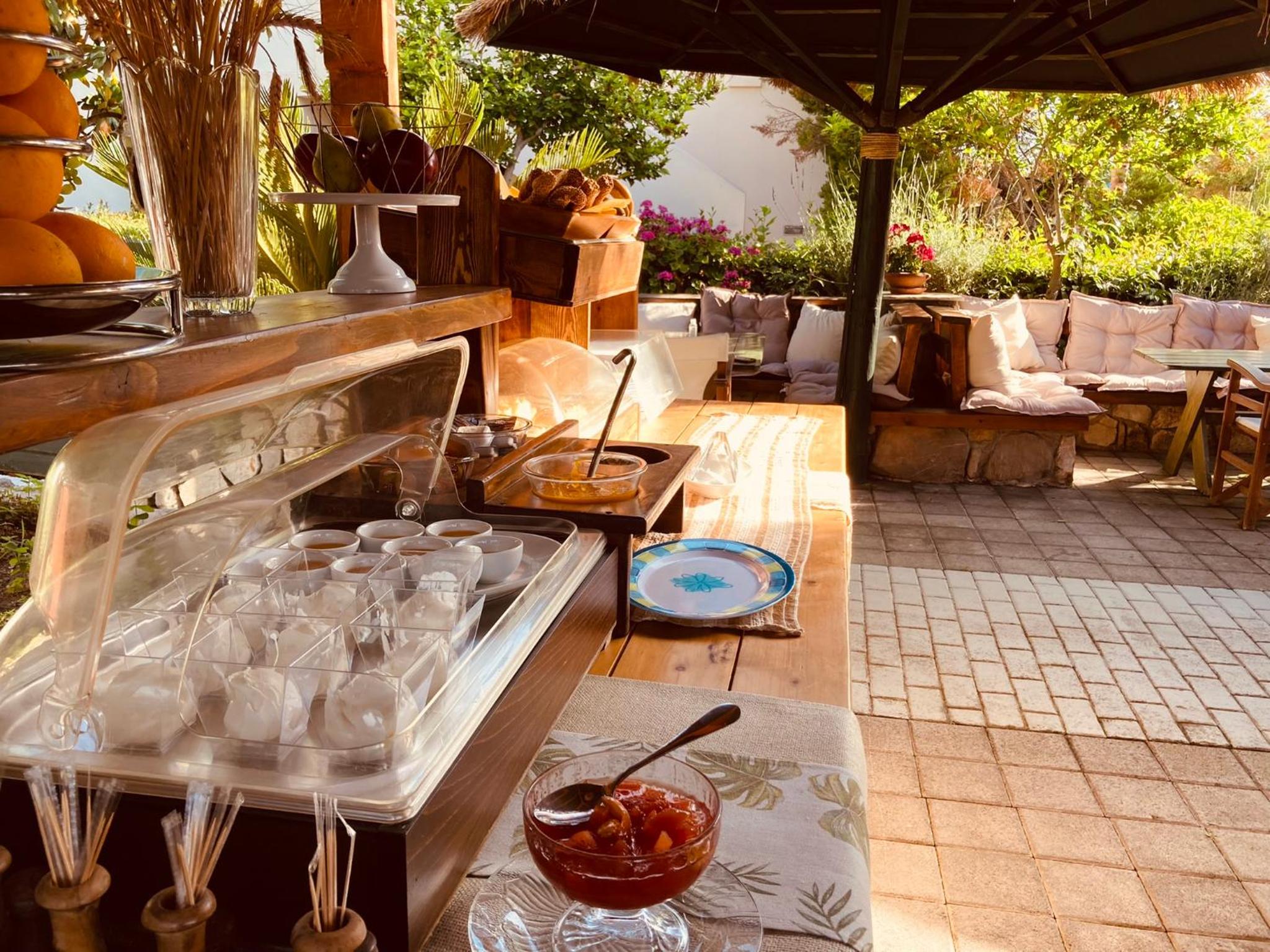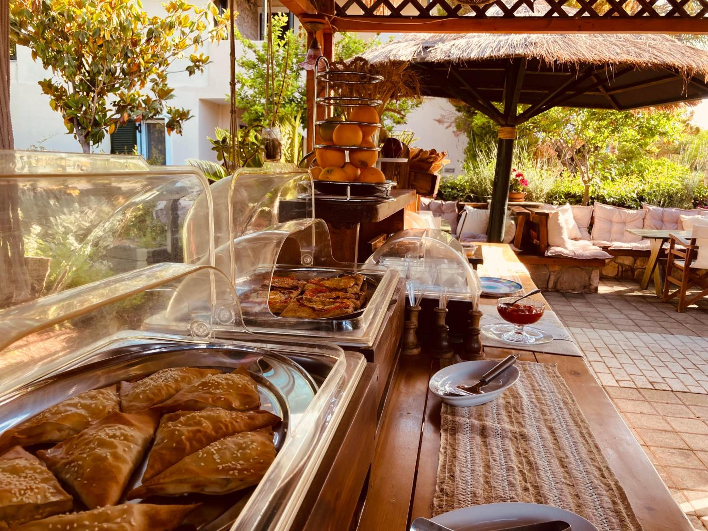 Die Gartenanlage war mit viel Liebe zum Detail gestaltet, unser Zimmer sehr geräumig. Das Personal war total zuvorkommend und flexibel. Uns hat auch gut gefallen, dass das Frühstück neben gängigen Bestandteilen wie Müsli, Käse, Wurst und Eiern auch griechischen Joghurt, hausgemachte Marmeladen, griechische Teilchen, Chiasamen und vegane Milch beinhaltete. Der frisch gepresste Orangensaft aus hauseigenen Orangen war der Knaller.