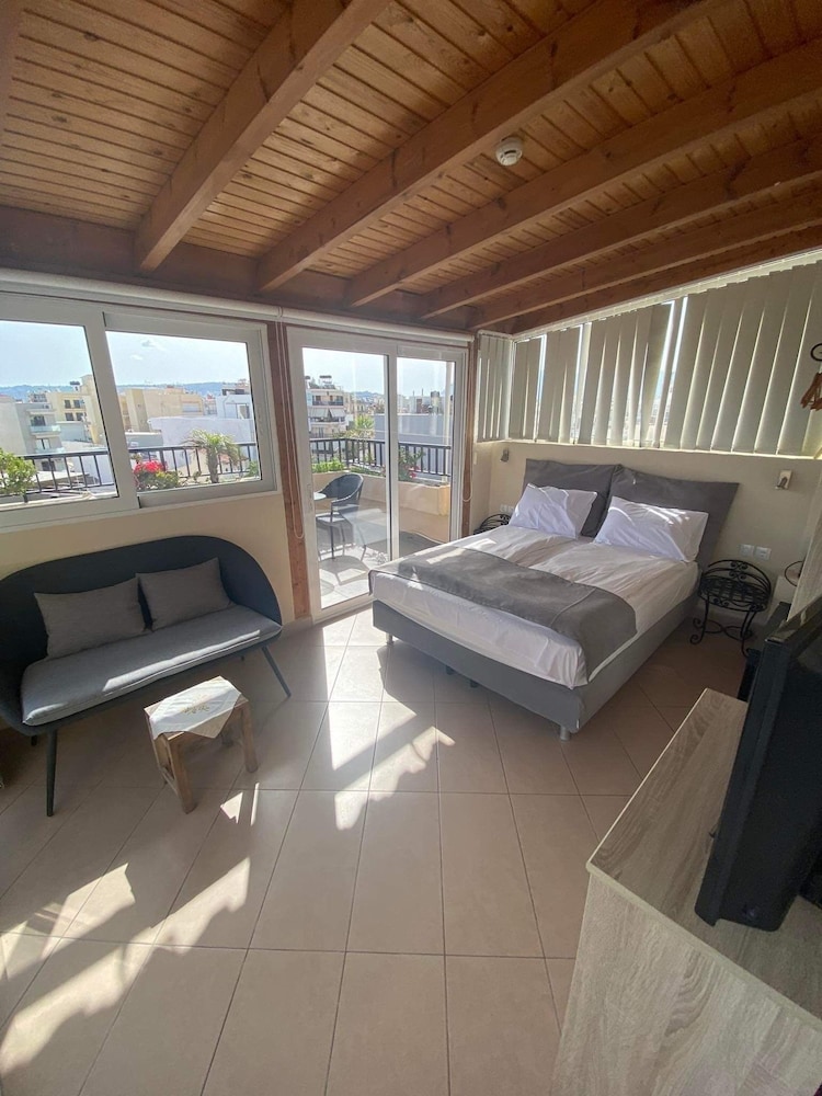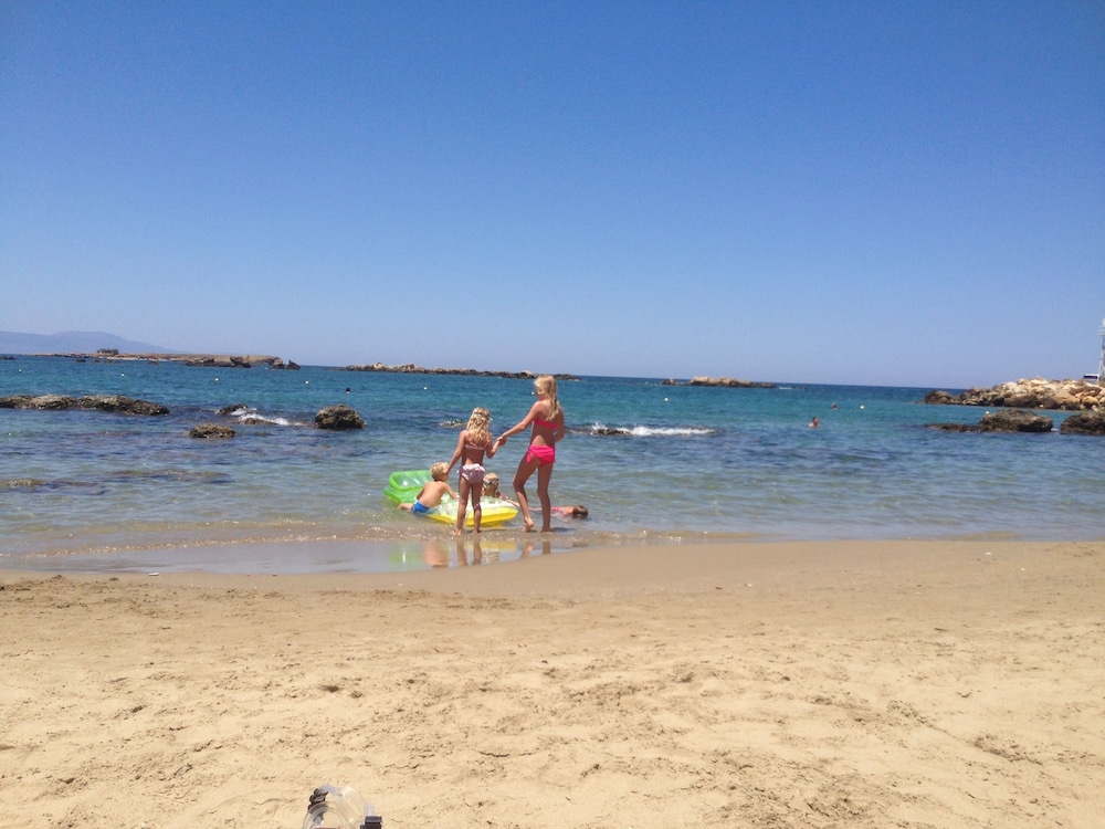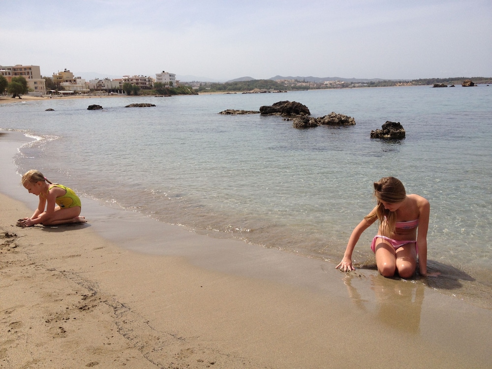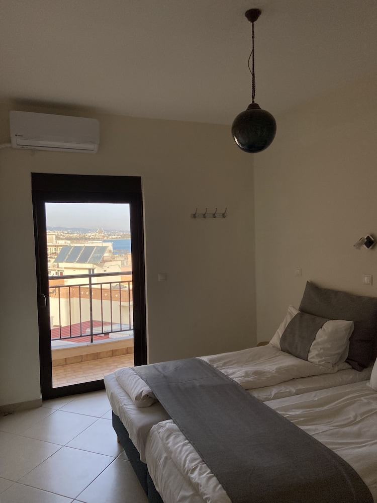 Nice and clean room with a view to the sea and friendly staff! The location is very good close to the sandy beach called "Nea Chora" and only 10-15 min. walking distance from the city center and the Old Venetian Harbor. The only drawback would probably be the lack of a second AC in the big bedroom/living room as one AC only (+1 big ventilation fan on the ceiling) cannot cover the whole area during the hot summer nights. Other than that, if you are looking for cheap accommodation in a good location, this is the place! I would definitely consider to stay there again for my future trips :)