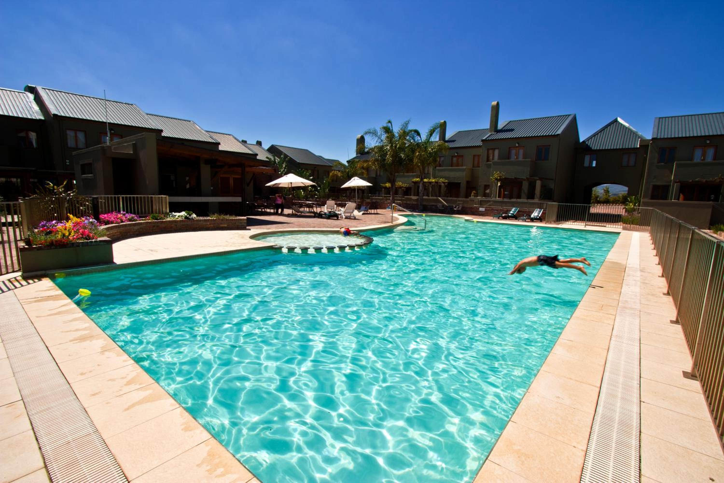 Unwind by the outdoor pool surrounded by a stone deck and palm trees. For the adventurous, explore mountain biking tours and fly fishing opportunities in the picturesque countryside just a short drive away in Stellenbosch.