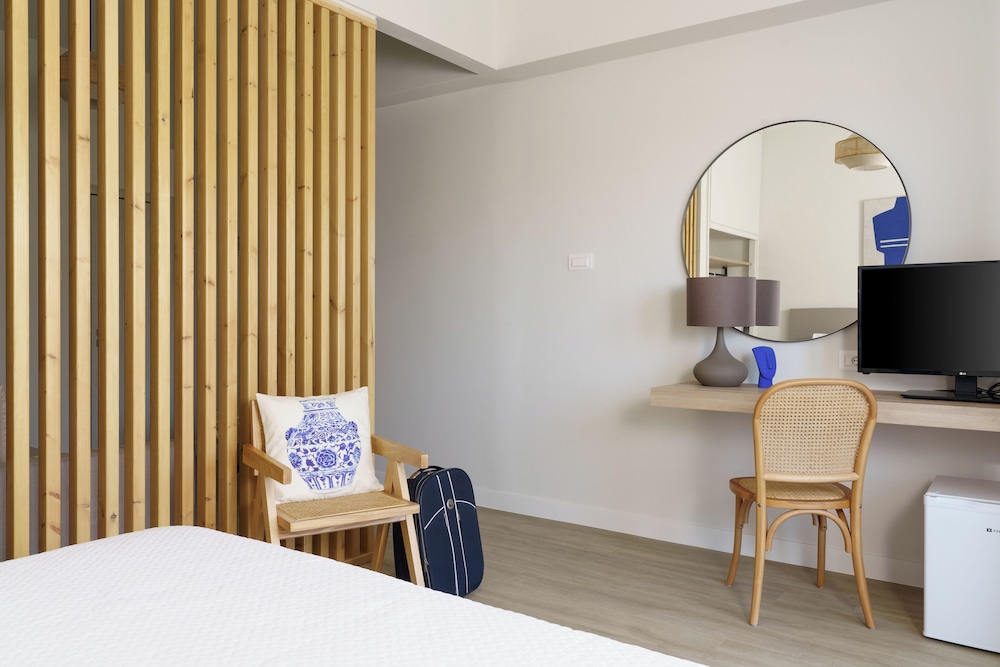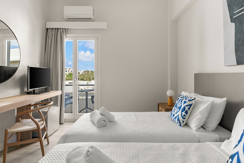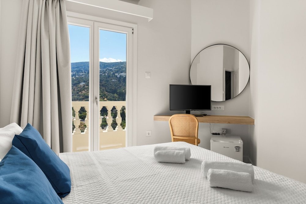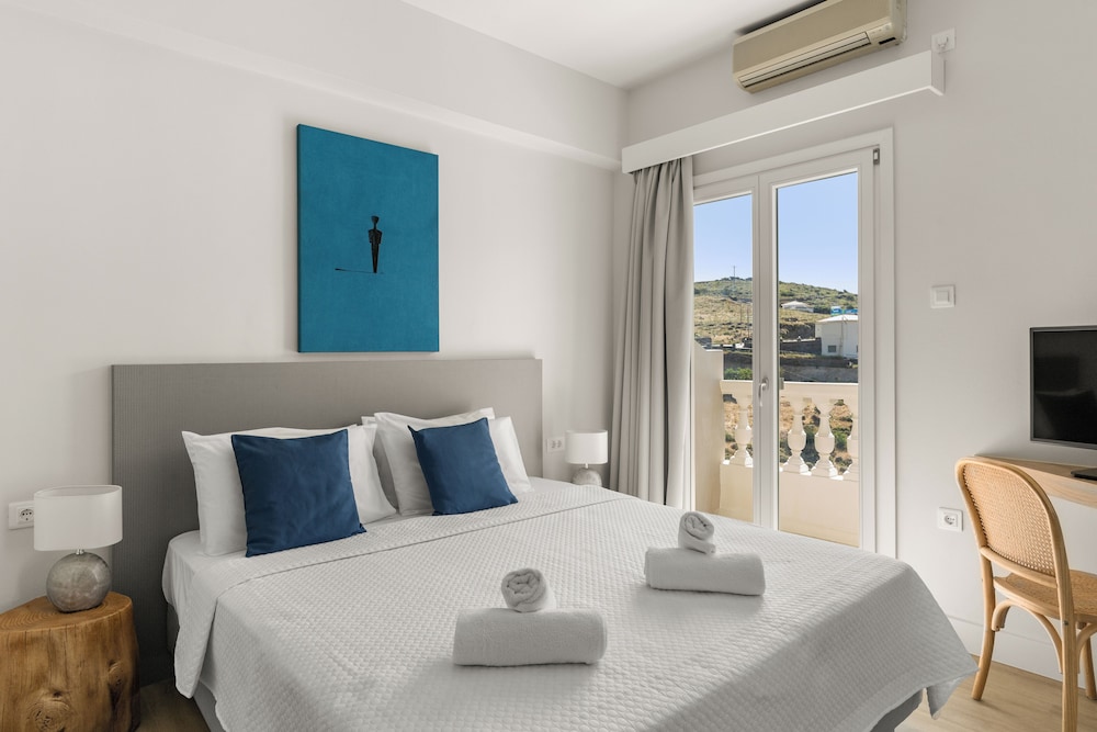 Hôtel à recommander pour sa situation, à 15 mn du centre ville de Chora et une belle vue sur la mer. Service, petit déjeuner complet et abondant. Seule la douche est un peu exigüe et à l'ancienne avec un rideau, à améliorer. la chambre est confortable avec une grande literie (180 cm) de qualité.