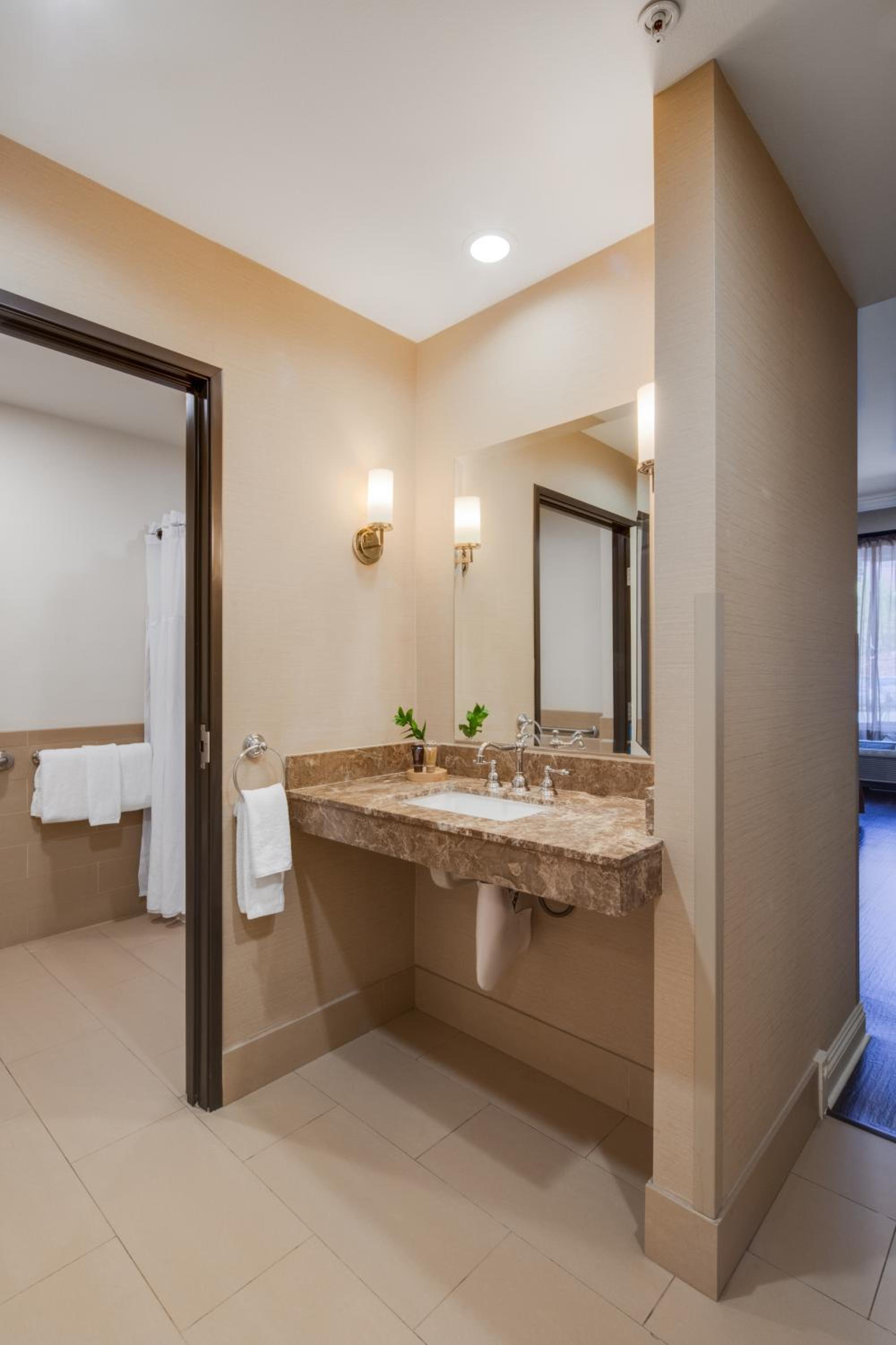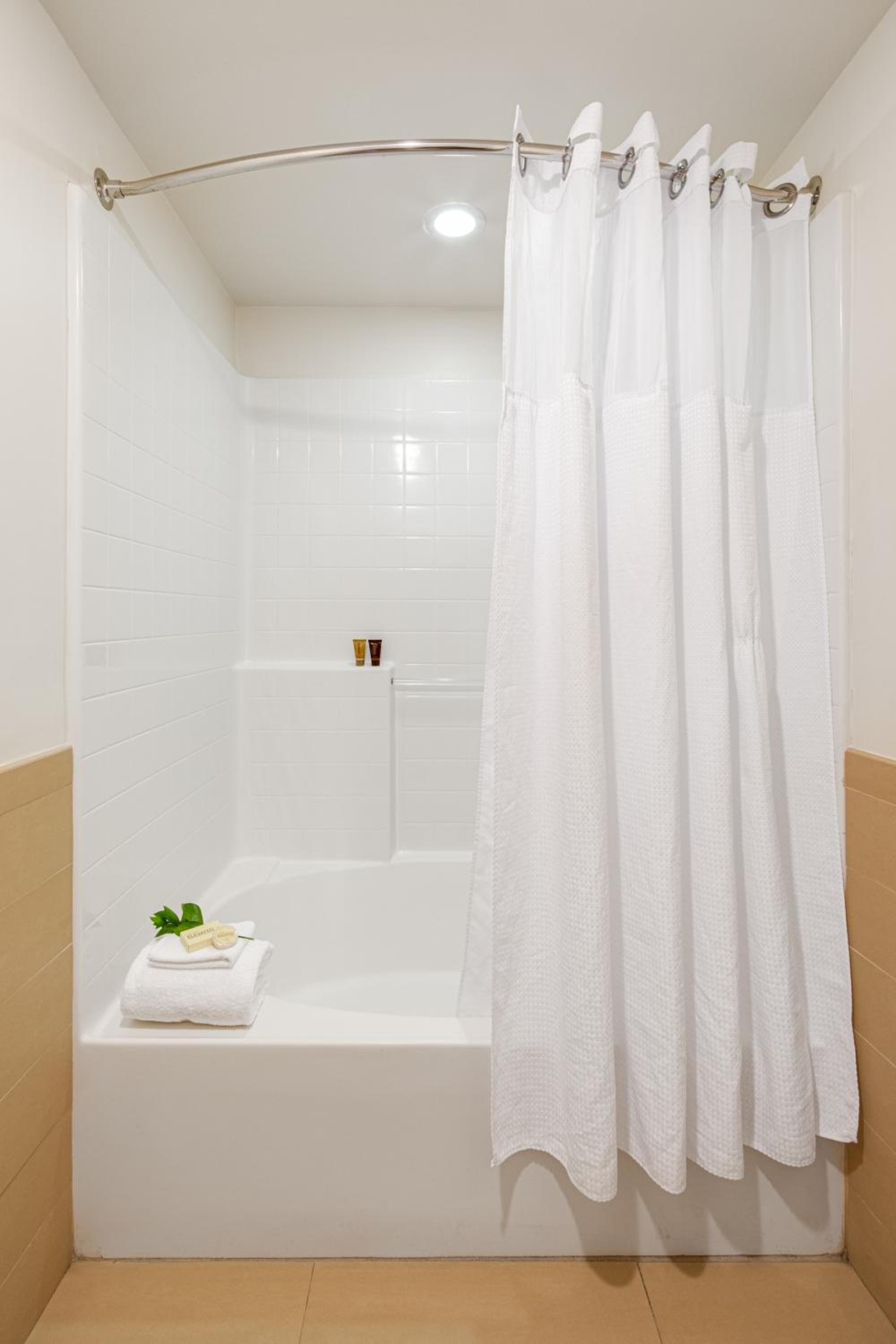 Location was good, in the city, not too far from freeway and shops/restaurants. We were able to grab a burrito around 9 at night. Beds and pillows were so comfy. Tub was nice big size.