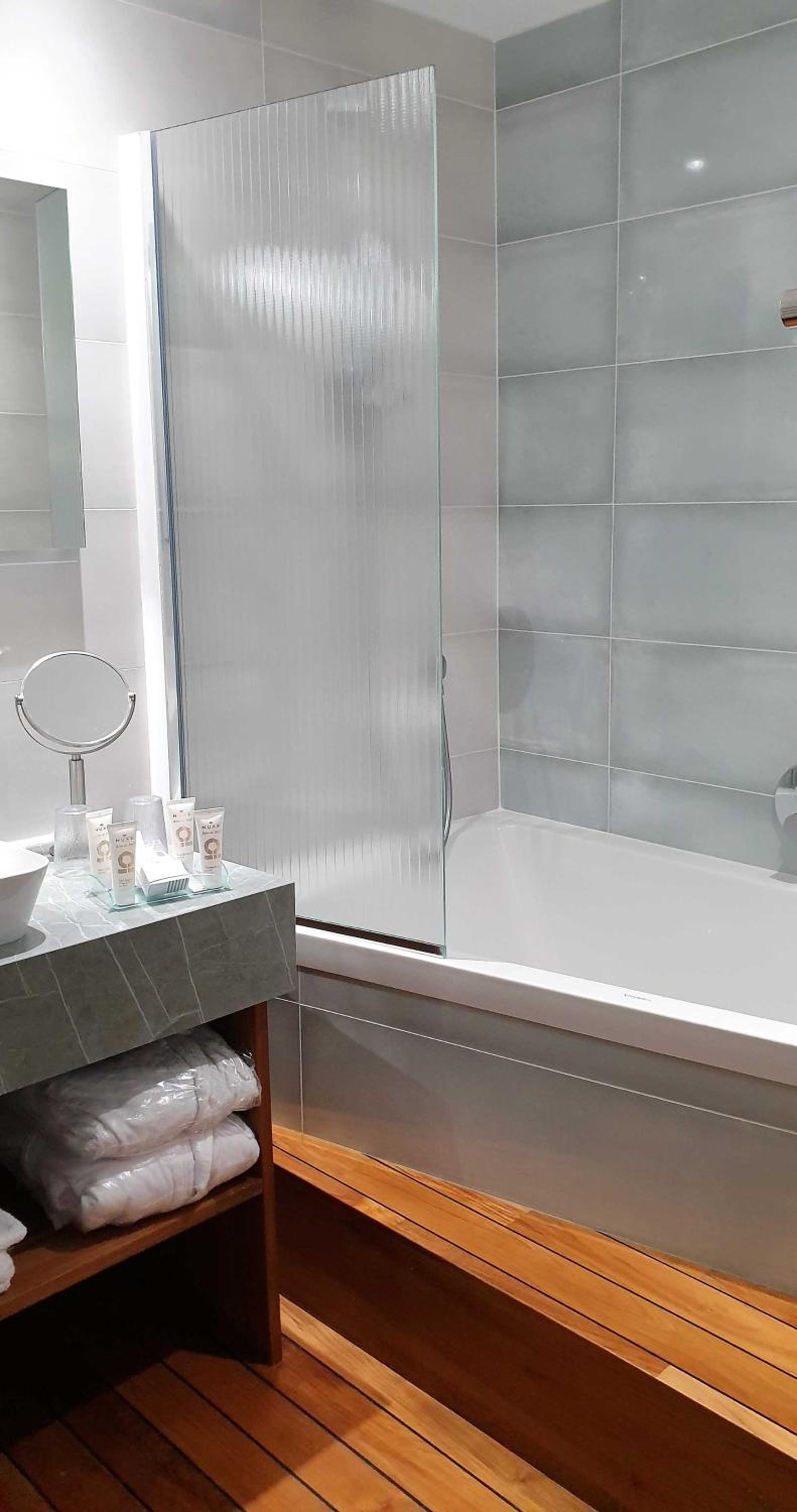 la douche dans la grande baignoire; j'aurais préféré un cabine de douche