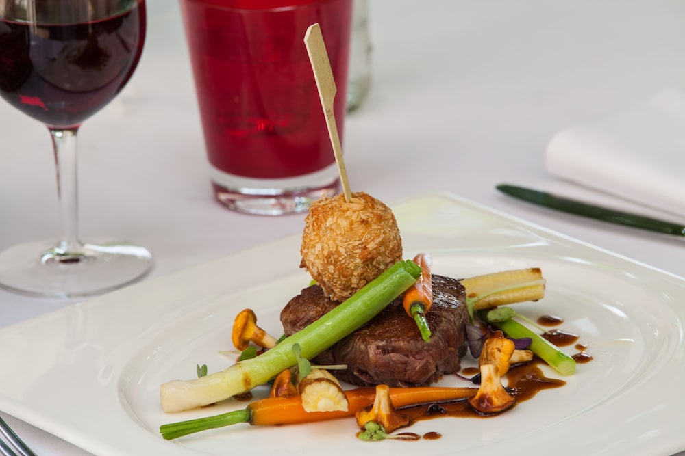 Service and food were quite good. Staff very helpful throughout. Grounds and jacuzzi very nice. Only drawback was the town has nothing of interest to tourists. (Certainly not the fault of the Chateau).