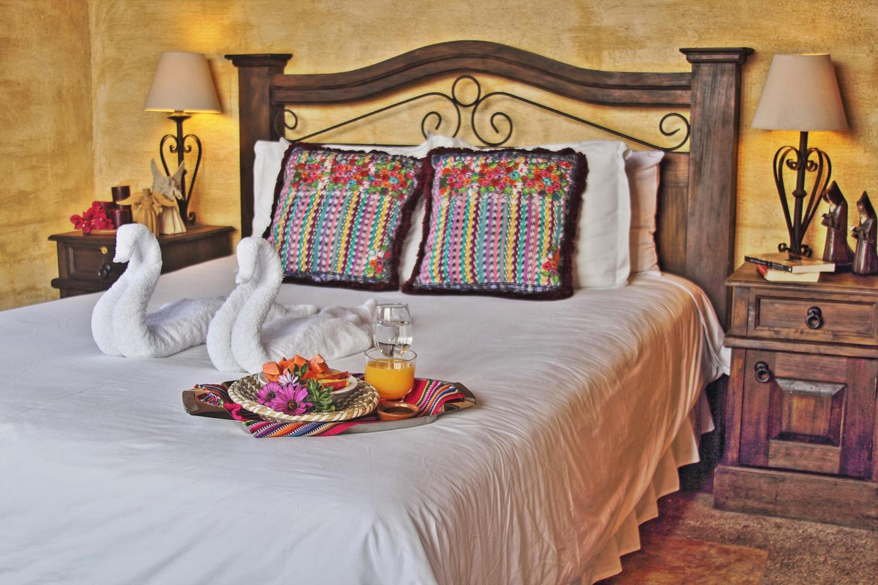 Experience the essence of Guatemala in our rooms featuring traditional handmade furniture and fabrics. Enjoy stunning views from your balcony overlooking the lush gardens or the majestic mountains and volcanoes.