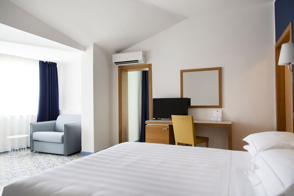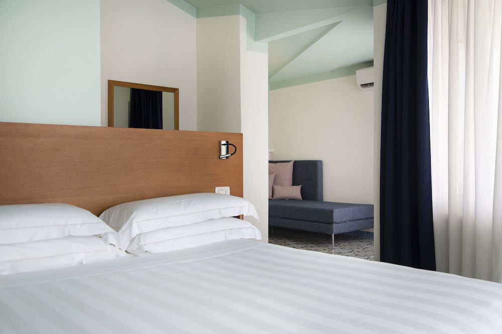 Non saprei nemmeno come esprimere la mia sorpresa per questo hotel che aveva tutte , ma proprio tutte le caratteristiche che io, pedante come sono, desidero. Camera molto carina, PULITISSIMA, ben arredata con due specchi a figura intera dei quali uno con luce naturale ottimo per truccarsi. Phon per capelli e prodotti. Molto spazio nell armadio e sul pavimento per i bagagli. Letto comodissimo, lenzuola ricamate, due cuscini di diversa grammatura. La zona piscina molto tranquilla e piacevole, sdraio comode. La piscina è grande. Personale, tutto il personale, di una gentilezza UNICA, dal personale addetto alle pulizie, alla reception, ai ragazzi delle colazioni. La posizione dell’hotel è perfetta, a due passi dal mare e dal centro. Il ristorante offre una scelta variata e la colazione è molto ricca. Grazie per l’ospitalità, per me valete un mare di stelline!