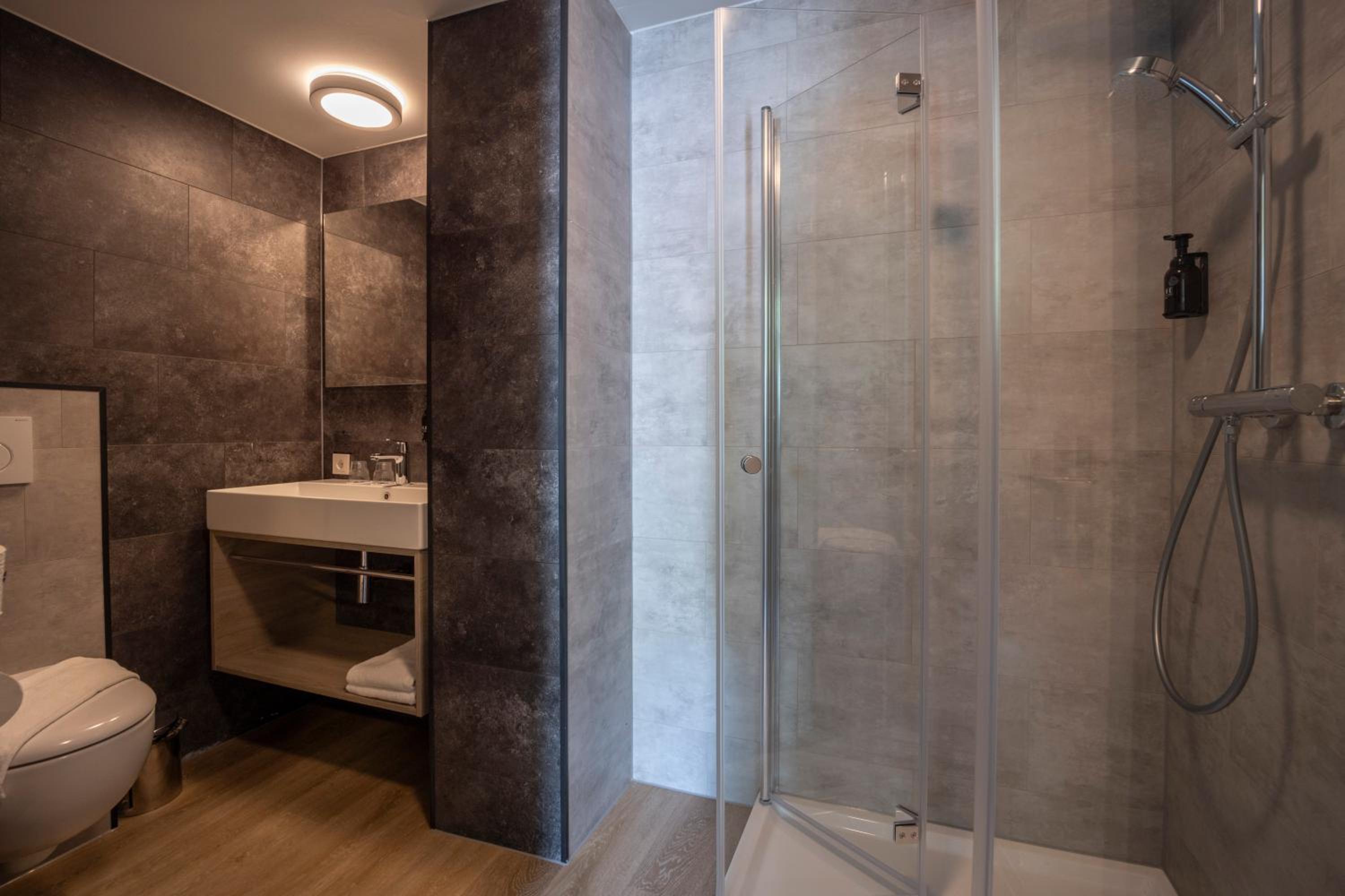 Geen ijskastje/geen plankje in douche om shampoo op te zetten