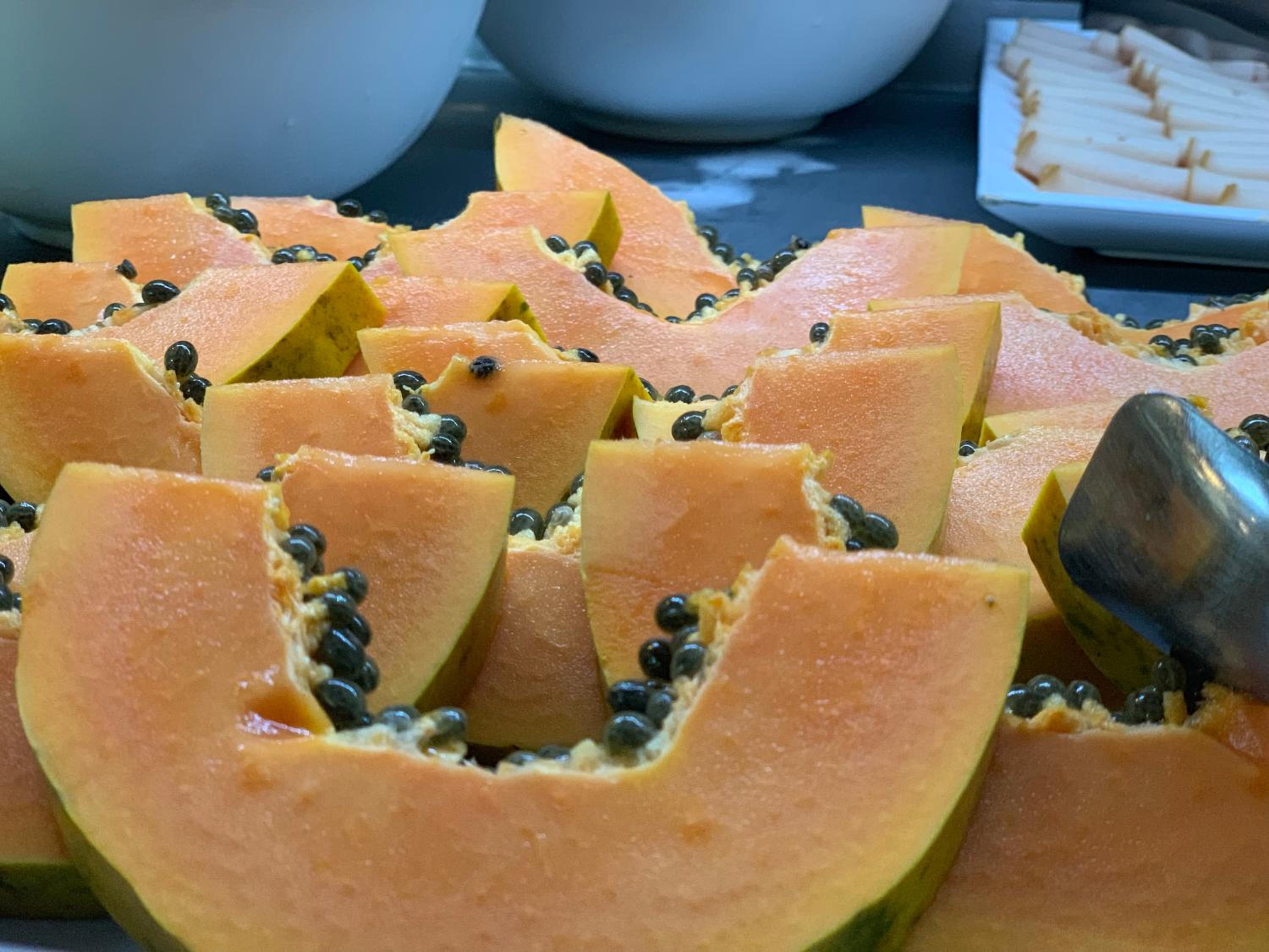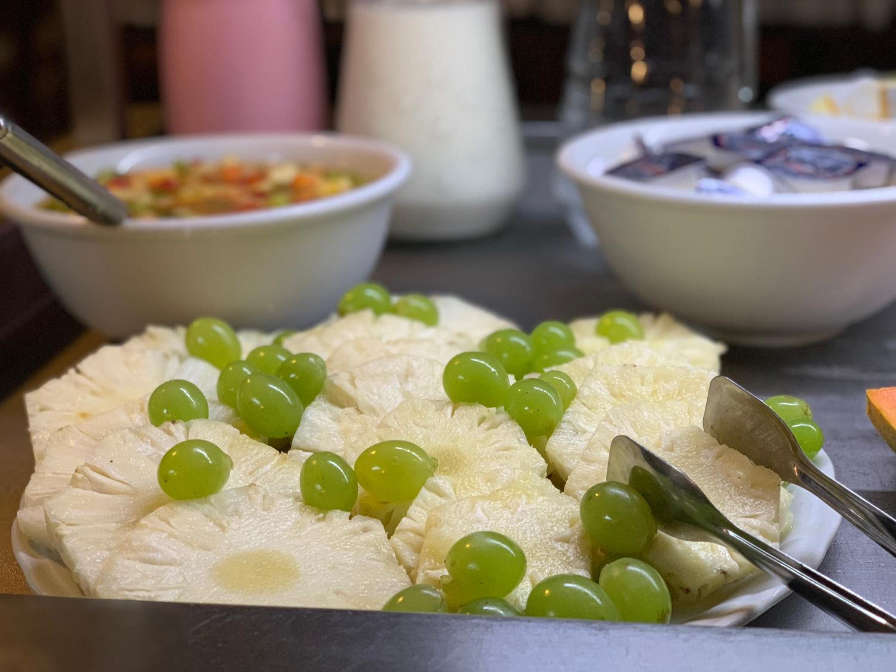 O café da manhã foi nota 6,muita mosca no local e em alguns pontos na alimentação precisa melhorar os pães estavam duros e poucas opções de doces