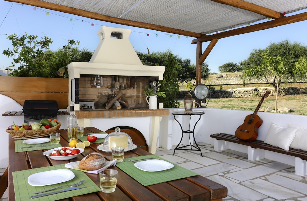 La mer est à 10 minutes à pieds, et il y a un mini market à 2 pas (pratique!). C'est près du centre et à la fois calme. Notre hôte a été très aimable et nous a donné quelques conseils sur l'île. Nous avons aussi pu lui louer son quad directement et grâce à cela nous avons pu parcourir Paros de long en large !