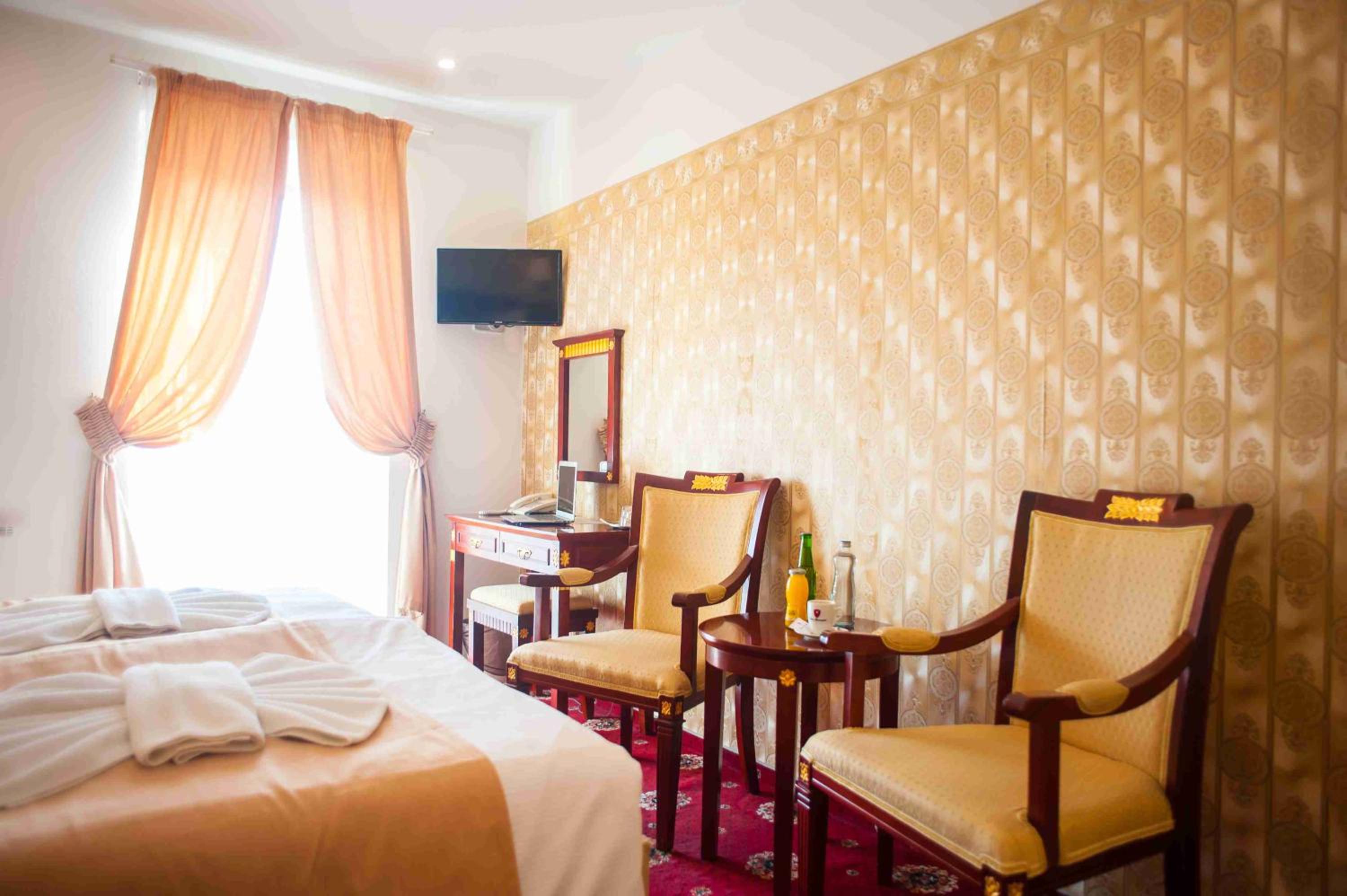 Brak klimatyzacji na poddaszu w ciepłych miesiącach musi być ciężko. Twarde materace i zbyt miękkie poduszki. Stara winda niby na 8 osób ale zawiezie tylko dwie osoby z bagażami. Hotel w dziwnym klimacie niby styl pałacowy, ale wszystkiego jest tak dużo że nie wiadomo o co chodzi, ale może komuś przypadnie do gustu.