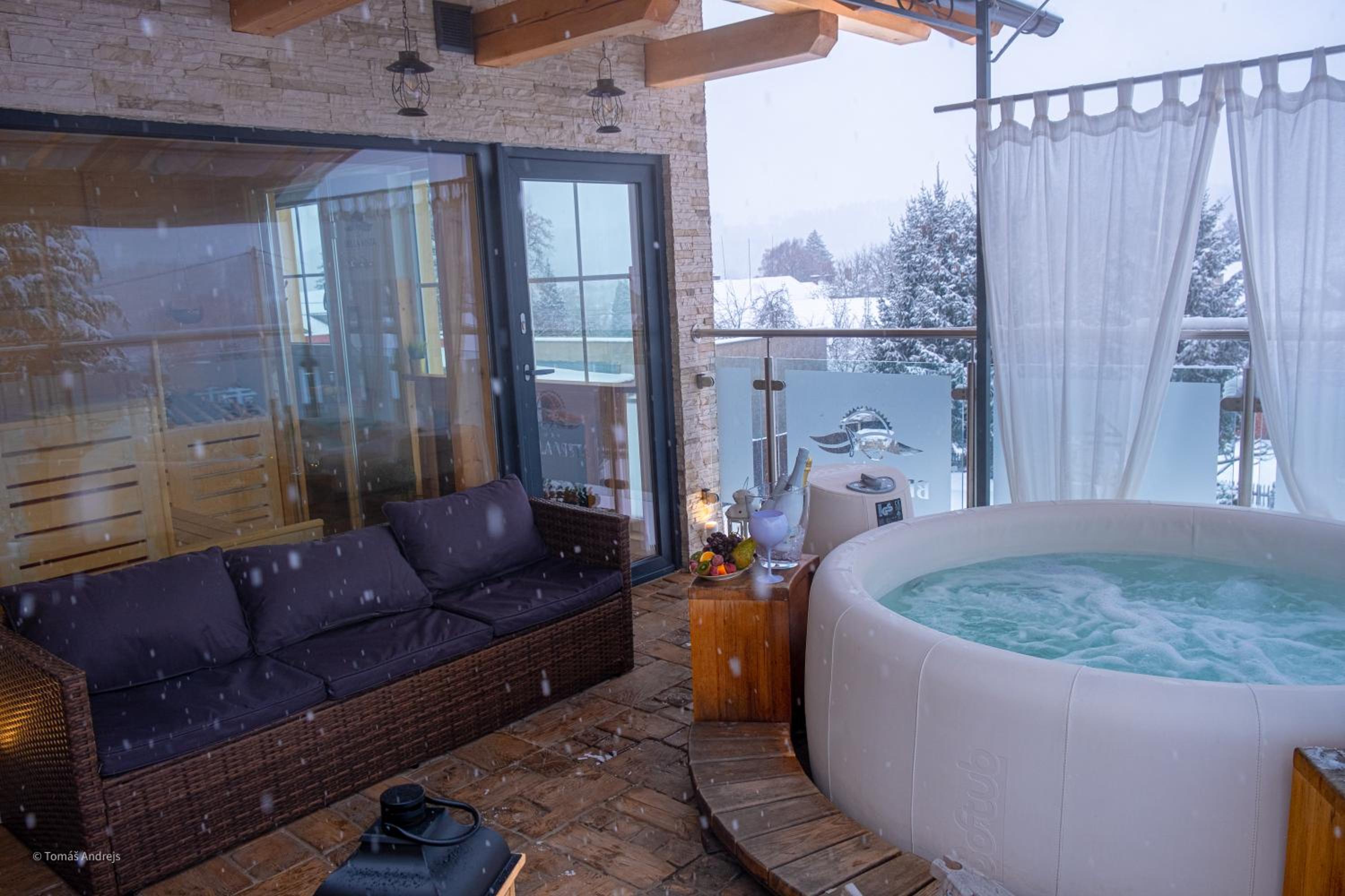 Das Hotel ist in einem kleinen Ort, leider gibt es weder im Hotel noch im Ort eine warme Küche, doch nach unserer langen Wanderung waren wir sehr hungrig und erkundigten uns nach Möglichkeiten, eines Restaurants und nach den Öffnungszeiten des Wellnessbereichs. Uns wurde mitgeteilt, dass im Wellnessbereich Uhrzeiten vergeben werden, was uns nicht verwunderte, denn das Hotel ist recht klein und man möchte scheinbar eine Überfüllung vorbeugen. Nachdem wir den Nachbarort nach ein paar Kilometern und vielen Kurven erreicht haben, und zu Abend gegessen hatten, war es bereits etwas später als unser eigentlicher Zeitplan es vorsah. Wir kamen im Hotel an, schnappten unsere Badetasche ( Bademäntel waren leider nicht im Zimmer ) und gingen in den Wellnessbereich und wurden von der Mitarbeiterin begrüßt, dass wir zu spät sind, sie signalisierte es immer wieder mit der auf die Uhr zeigenden Geste ( zu diesem Zeitpunkt war es 20.27 Uhr ). Es war alles abgedeckt und dunkel, es war nur der herkömmliche Pool geöffnet. Wir ließen uns den Wellnessbereich zeigen, die Mitarbeiterin deckte den Pool sofort ab und wir gingen danach entspannt zur Rezeption um für den nächsten Tag erneute Zeiten zu vereinbaren. Das taten wir, fragten nach dem Whirlpool auf der Dachterrasse und ob zusätzliche Kosten entstehen, erst dann wurde uns eine Preisliste für alle Bereiche vorgelegt. Wir waren sehr verwundert, denn zu keinem Zeitpunkt wurde dies kommuniziert oder irgendwo darauf hingewiesen, dass die bloße Nutzung eines Pools, des Whirlpools oder der Sauna kostenpflichtig ist. Wir baten um Kulanz, da es ja erst 20.37 Uhr ist und wir ja noch mindestens 20 min den Pool hätten nutzen können.