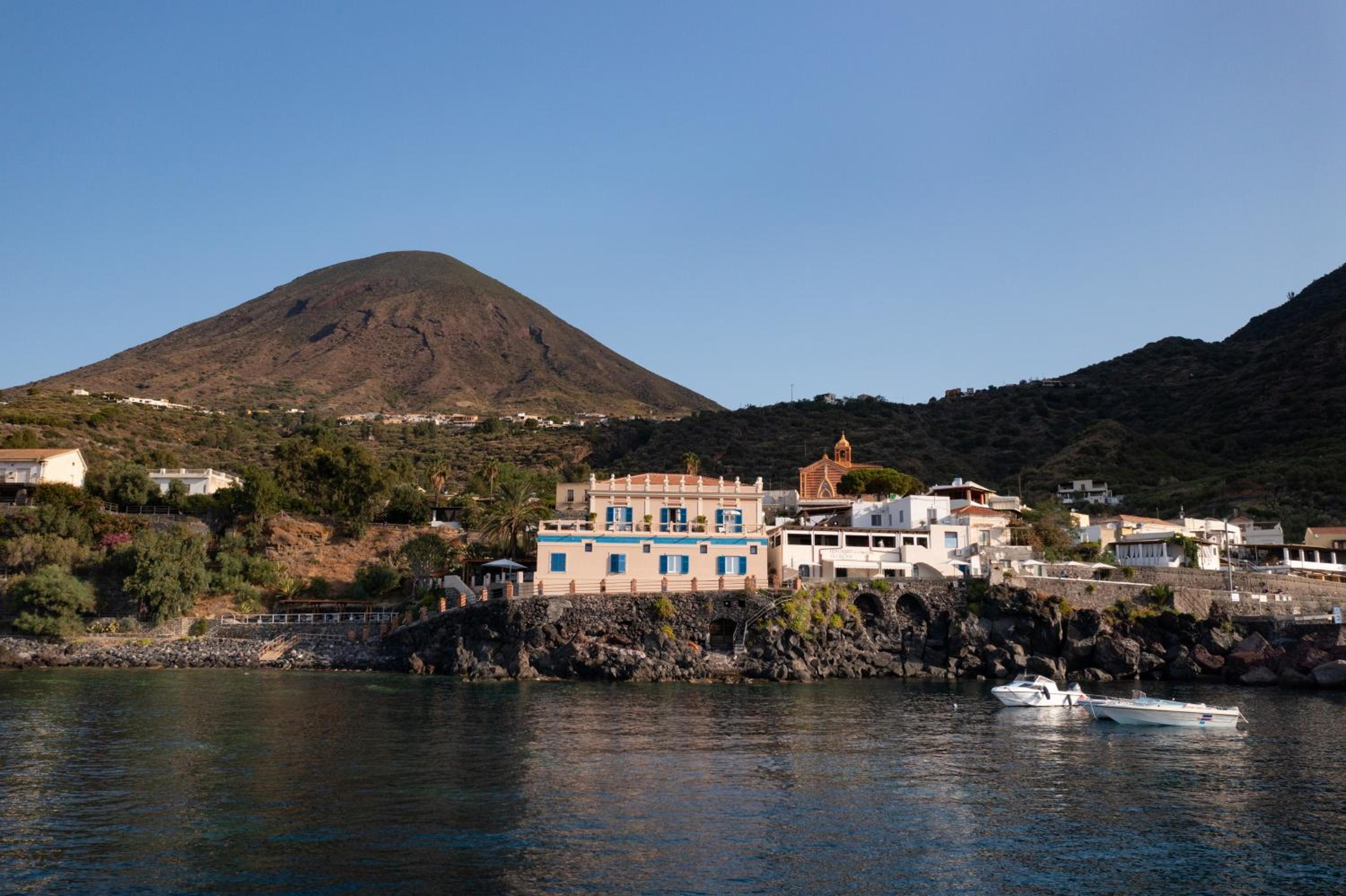 The hotel, L’Ariana, offers a unique experience with its colonial villa charm and modern comforts. Nestled on rocks by the sea, it provides a serene atmosphere for a relaxing holiday. Guests can enjoy untouched natural surroundings and easy access to the port of Rinella, perfect for exploring the Aeolian Islands.