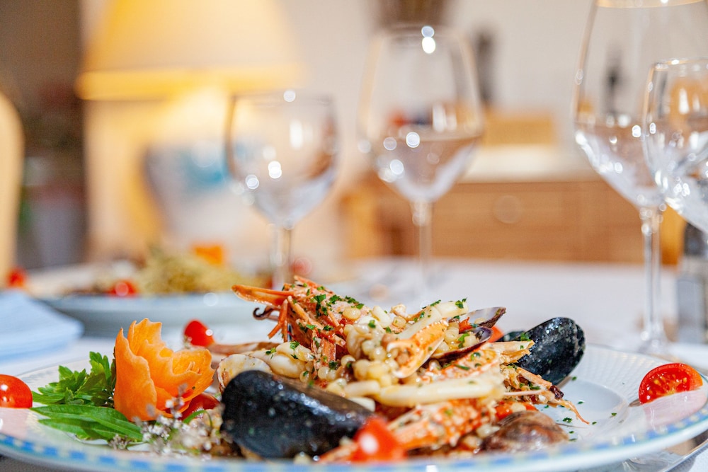 Un buon ristorante con ottimi piatti, e una bella piscina.