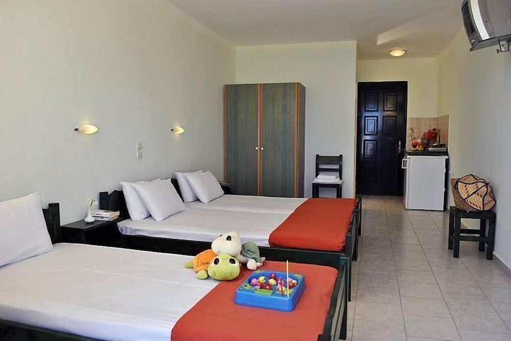 Comfortable Accommodations and Nearby Attractions - The 24 air-conditioned rooms with kitchenettes and free Wi-Fi ensure a homely stay. With multilingual staff, luggage storage, and a safe deposit box, explore nearby attractions like Amoudi Beach and Psarou Beach conveniently.