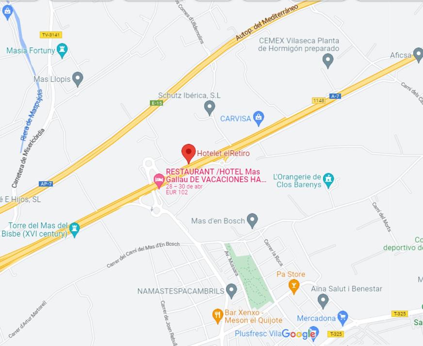 The Hotelet elRetiro Hotel is perfectly situated next to the A-7 motorway, offering easy access to Cambrils and the surrounding areas.