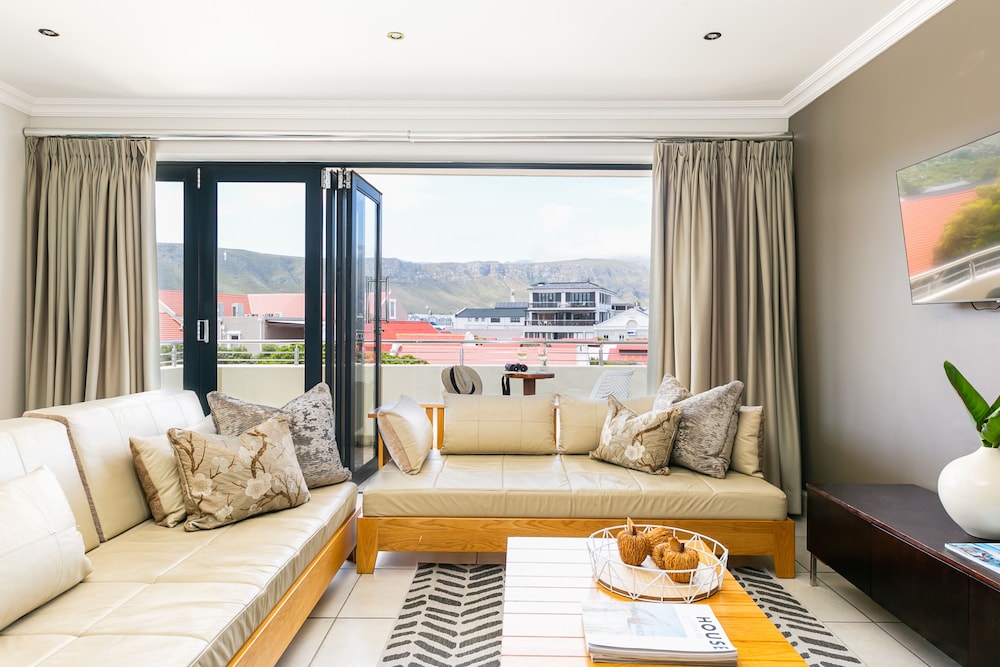 Great location in the heart of Hermanus. Close to restaurants, market, cliff paths. ( a must do ) . There is parking at the hotel. The room was good although noisy ( other guests in corridor) and overlooked the car park which was disappointing. Bathroom had a bath and shower. Nespresso machine and kettle. Highlights were the complimentary freshly baked scone and tea on the terrace overlooking the sea when we arrived and a welcome cocktail which we had before going out to dinner. Would definitely recommend.