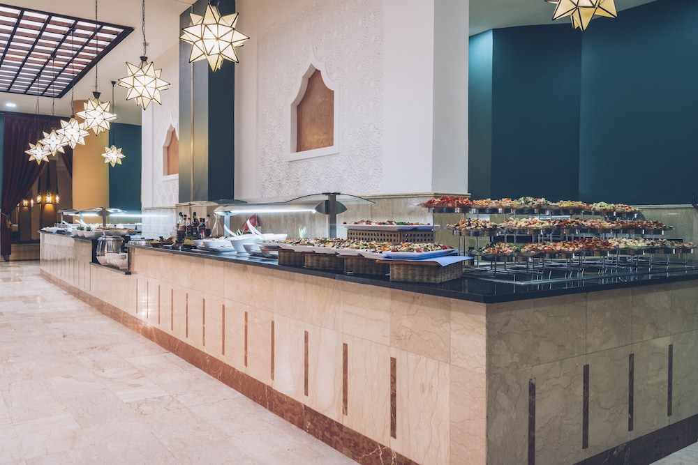 The vacation was definitely a plus. Of course, there are things to complain about (e.g., no kettle in the room or the fact that the bellboy does not bring your luggage to the room, so you have to look for it yourself, and the hotel is huge). As for the food, it is good and varied, the drinks are fine, and the hotel rooms are fine—clean. The beach next to the hotel is huge and clean, and there are hotel sun loungers, but there is no bar, only water is available. There are 3 or 4 hotel pools, and you can easily find a place everywhere. The hotel is close to the marina in Saidia and the city center. The hotel also offers plenty of daytime entertainment and there is always some kind of themed show in the evening. I recommend it!