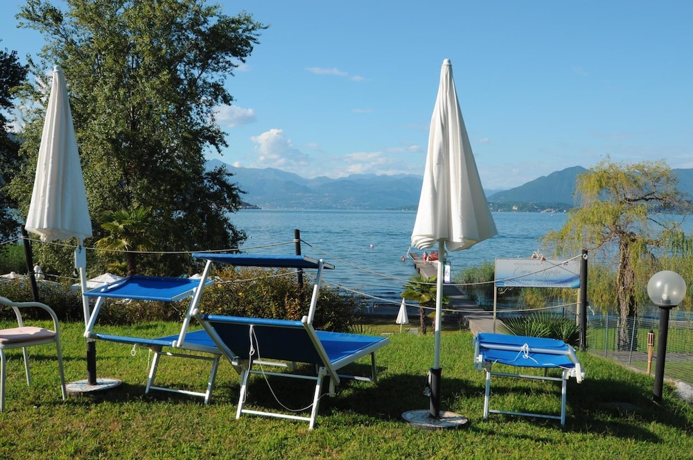 The hotel is situated on the side of Lake Maggiore in its own grounds with ample parking. The rooms on the second floor all have balconies facing the lake which are both sheltered Md private.