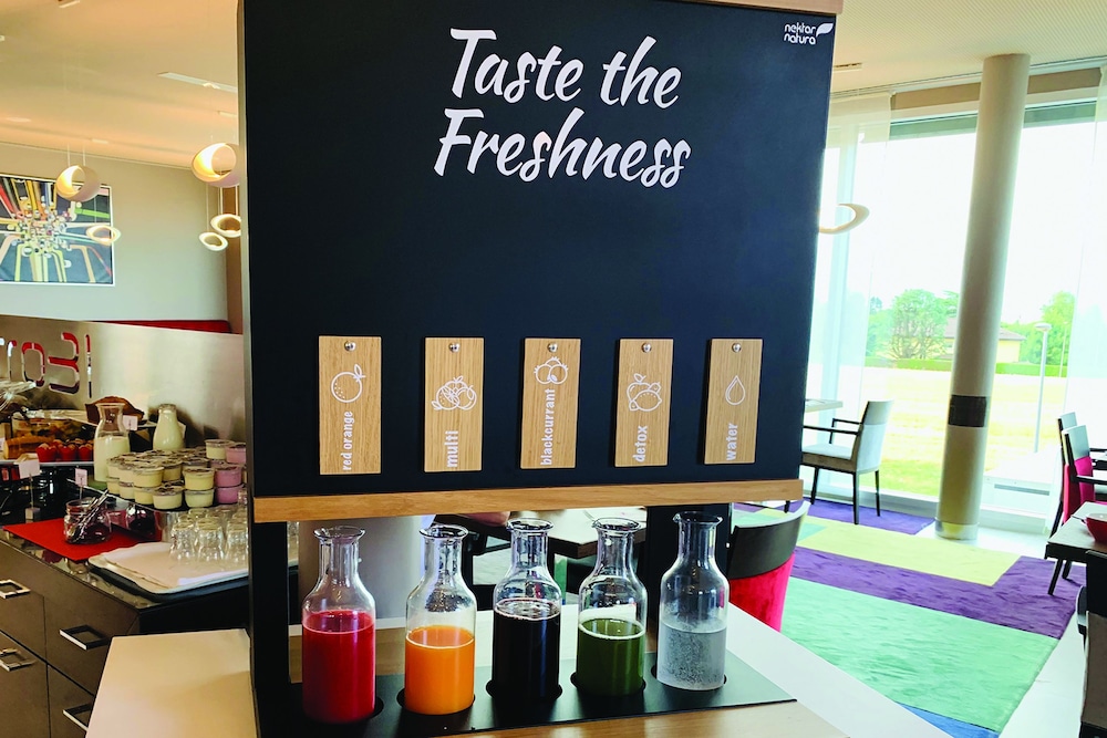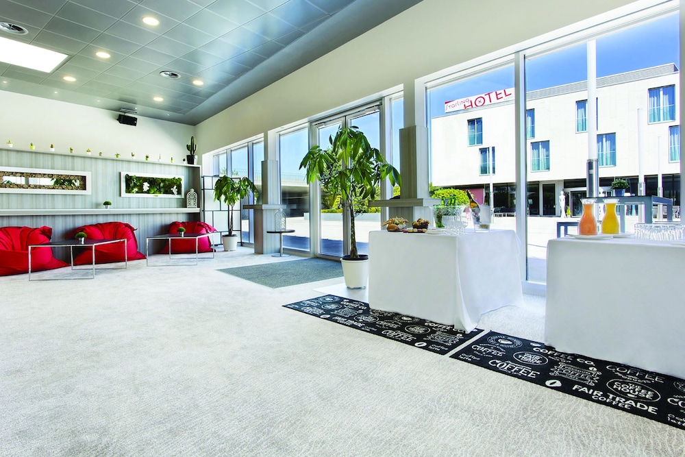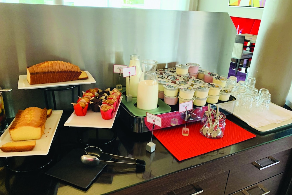 Hôtel moderne, chambre confortable et bien organisée pour maximiser l’espace. Le personnel est accueillant. Le petit déjeuner manque de fruits et est en quantité insuffisante particulièrement lorsqu’ils accueillent des groupes.
