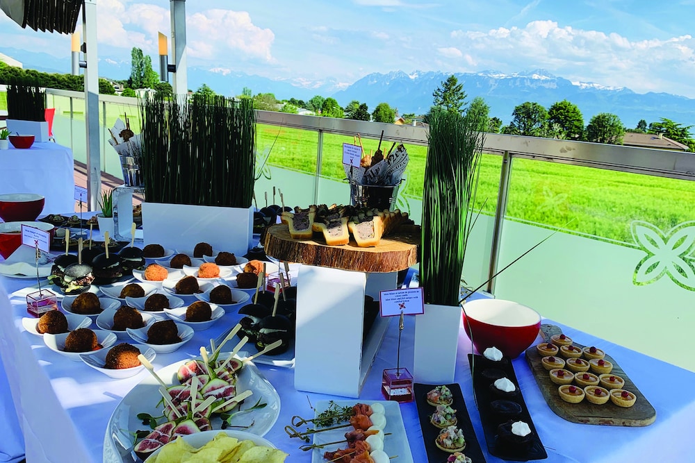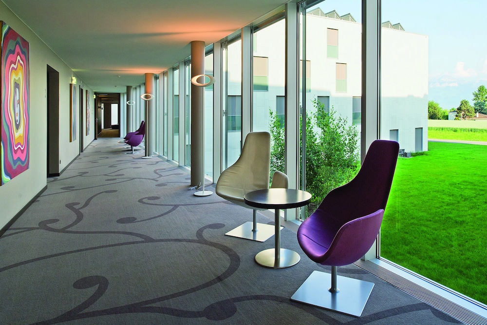 A nice hotel option, upscale, architecturally a bit severe but with a very nice view of the mountains (not so much the lake). Overall, the neighborhood is very safe but unattractive: EPFL is not a campus notable for its grade, and the hotel has some sort of muddy field behind it (but with a path you can follow to walk on the side of the lake, which I recommend). Restaurant is good but has a limited choice; bar is fine but mostly has fairly cheap liqueur at relatively steep pricing. But the staff is incredibly warm and helpful, and we valued that.